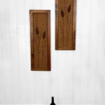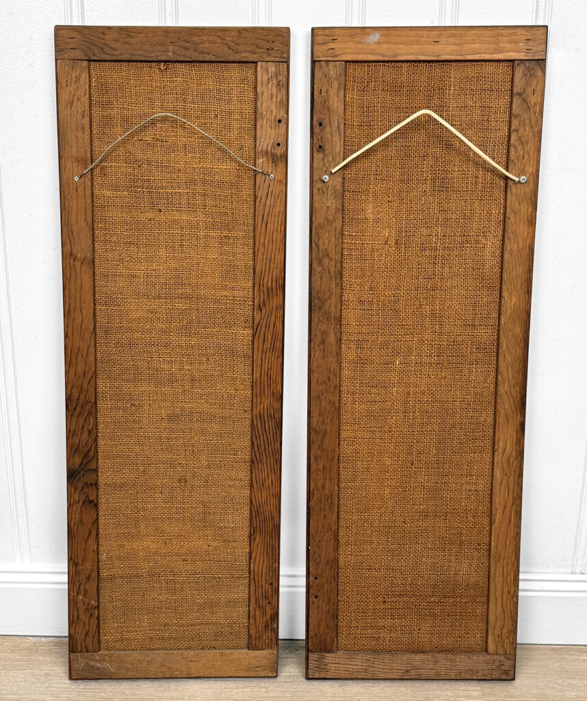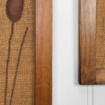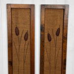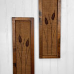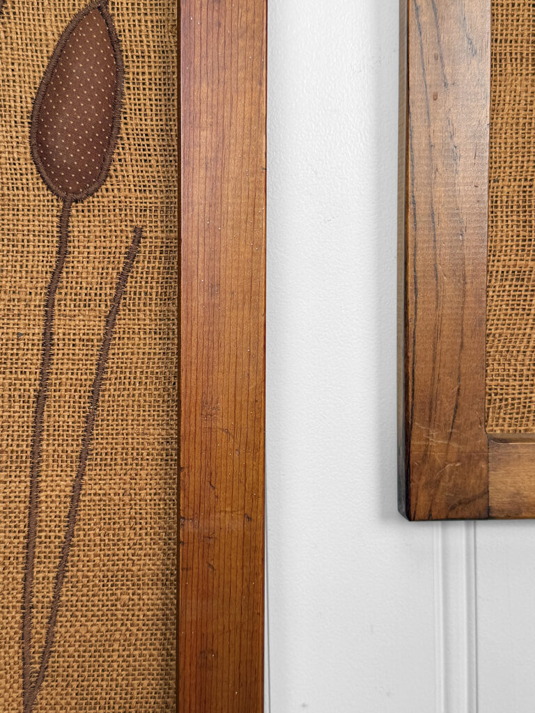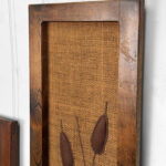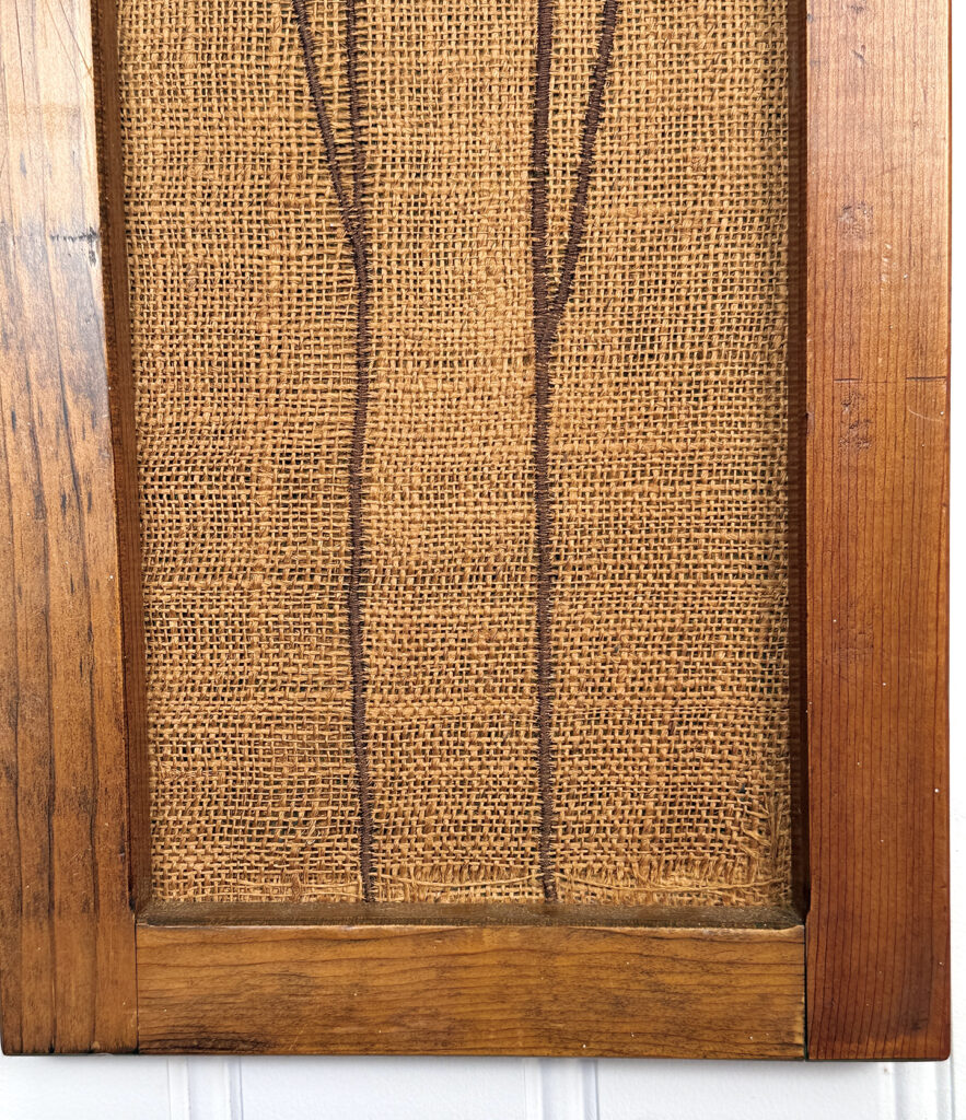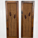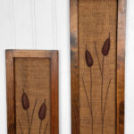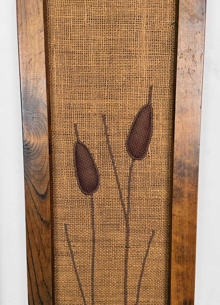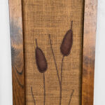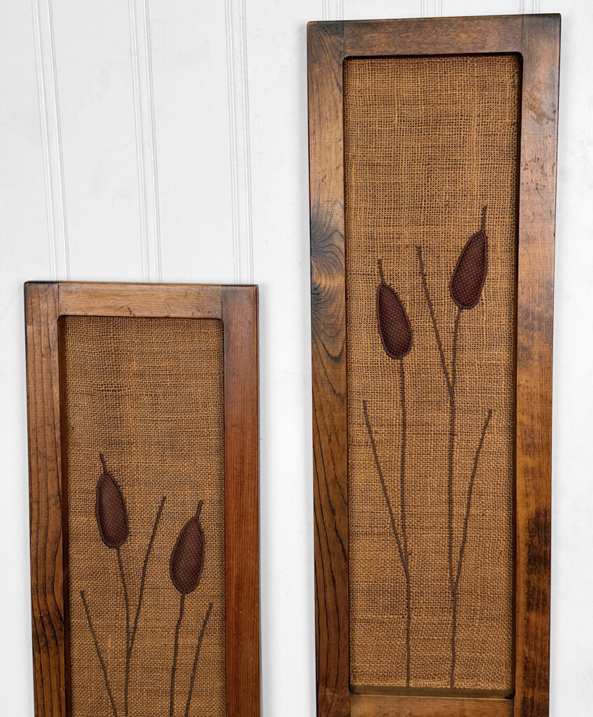 Mid-Century Embroidered Burlap Cattail Framed Wall Art – A Pair
