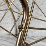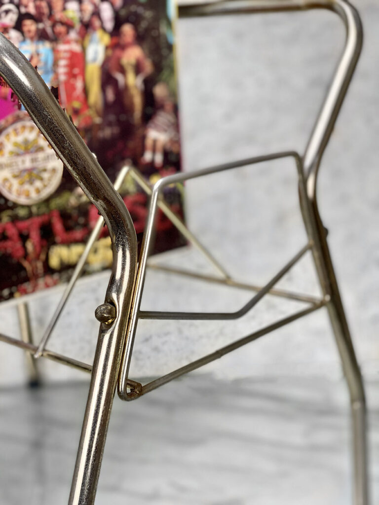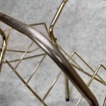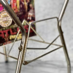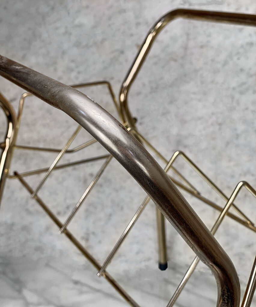 This Vinyl Record Stand was exceptionally well made, it stands both solid and sturdy. The Stand would support a generous sized record collection with lots of weight. Surface scratches and areas of wear to the gold gild is shown from age. The metal shows tarnishing.