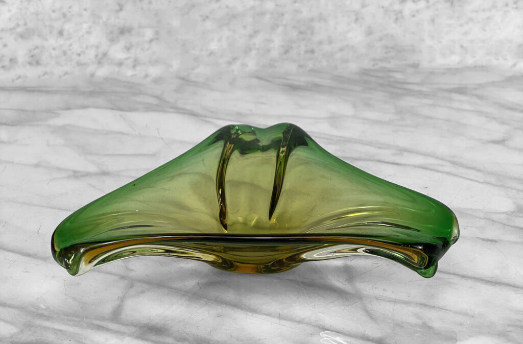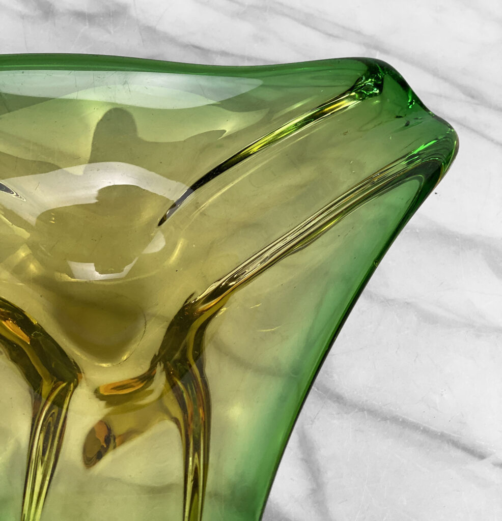 Mid-Century Atomic Italian Murano Green Art Glass Centerpiece Bowl