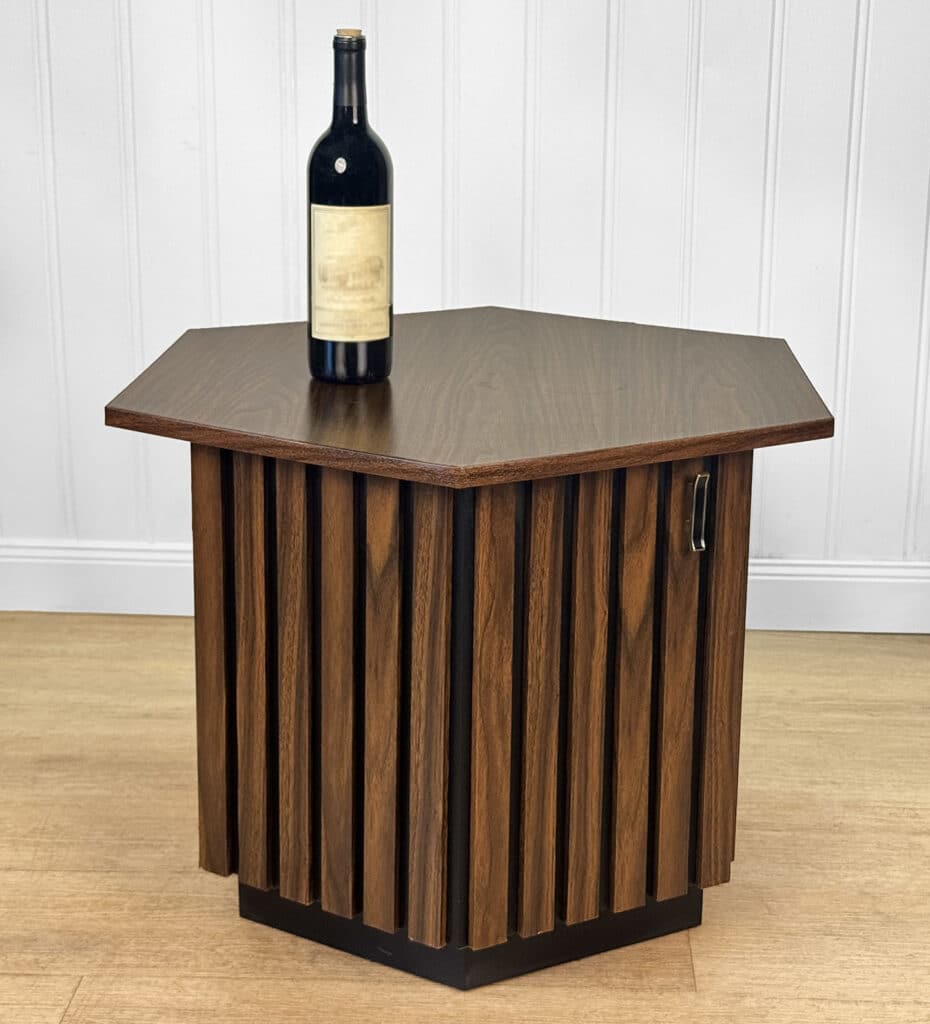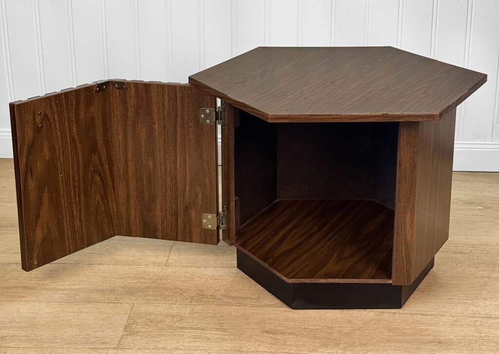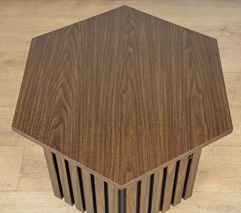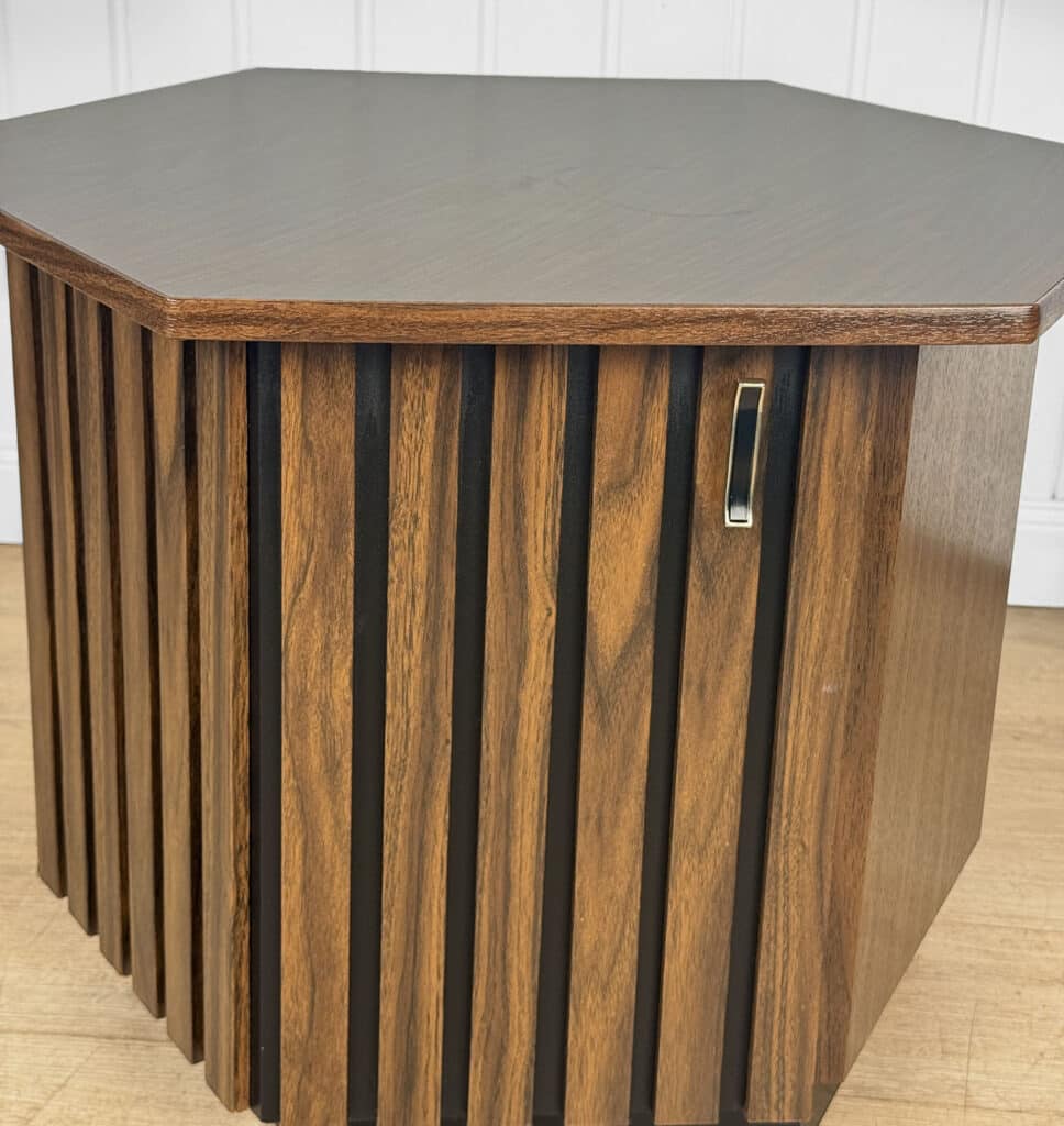 Mid-Century Hexagonal Walnut & Black Laminated Cocktail Table