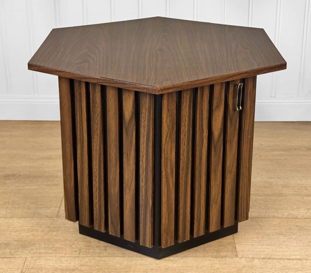 Vintage Hexagonal Laminated Walnut & Stripped Black Cocktail Table, c.1970’s