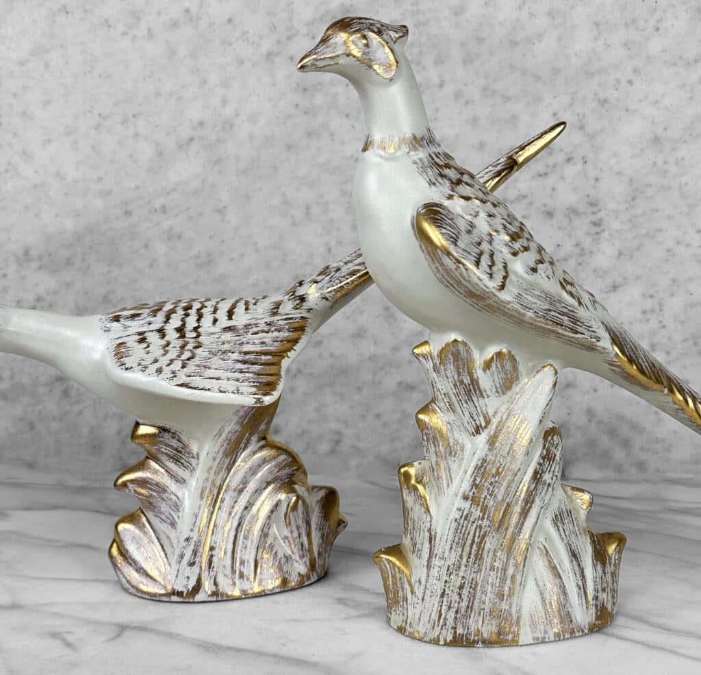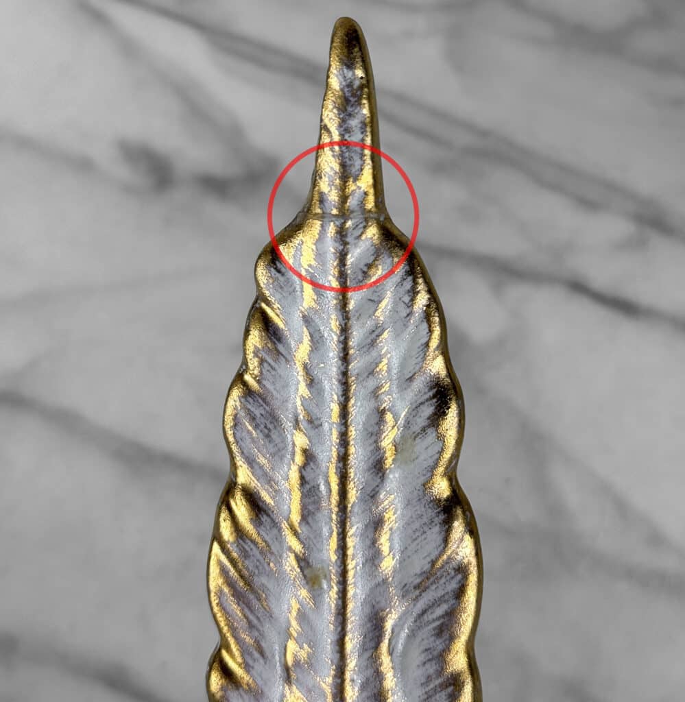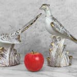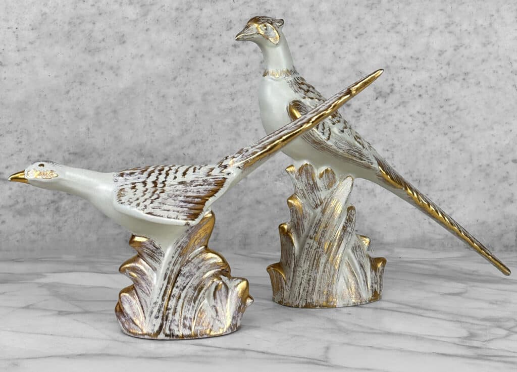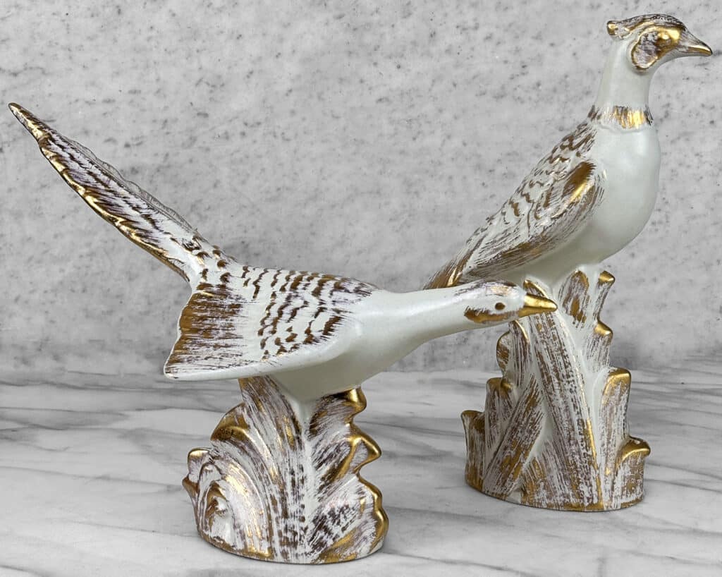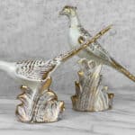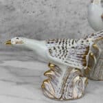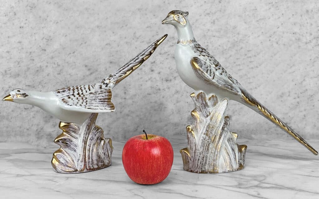 Overall good condition. The bird that has its tail in the air has a repair to the end of the feathers. This area is circled in our photo gallery – It is a good repair.