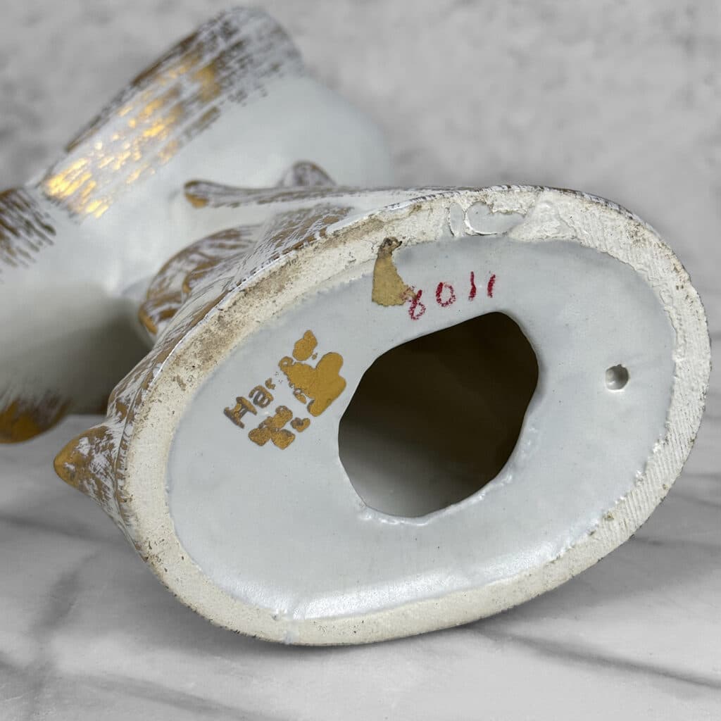 - Matte Glazed Ceramic with Gold Gilded Accenting