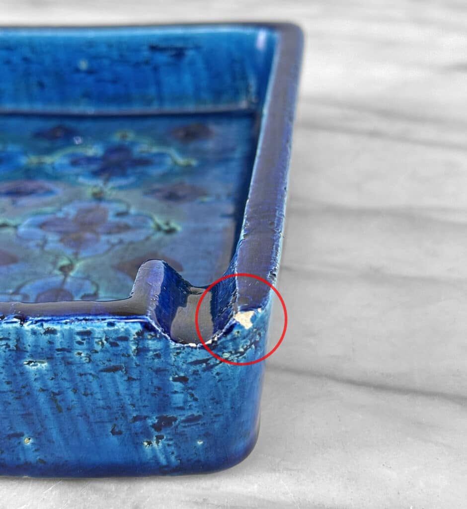 A series of fleabites can be seen along the smoke rests. These areas have been circled in our photo gallery to reference. Overall good condition without any repairs. Mild discoloration can be seen to the interior from previous use.