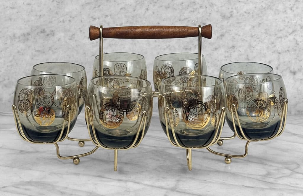 - Original Set of “Roman Coin” Lowball Glasses by Libbey (USA)