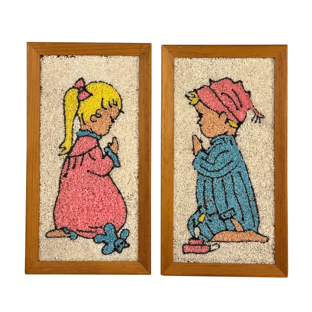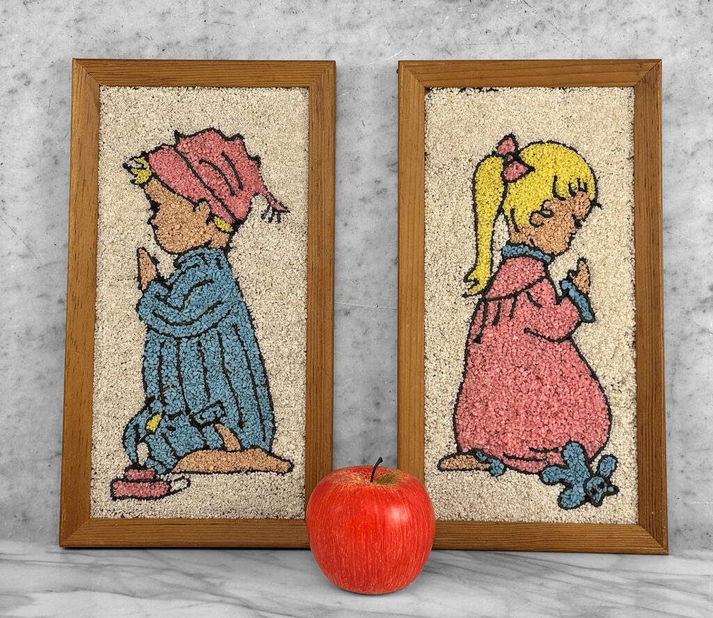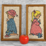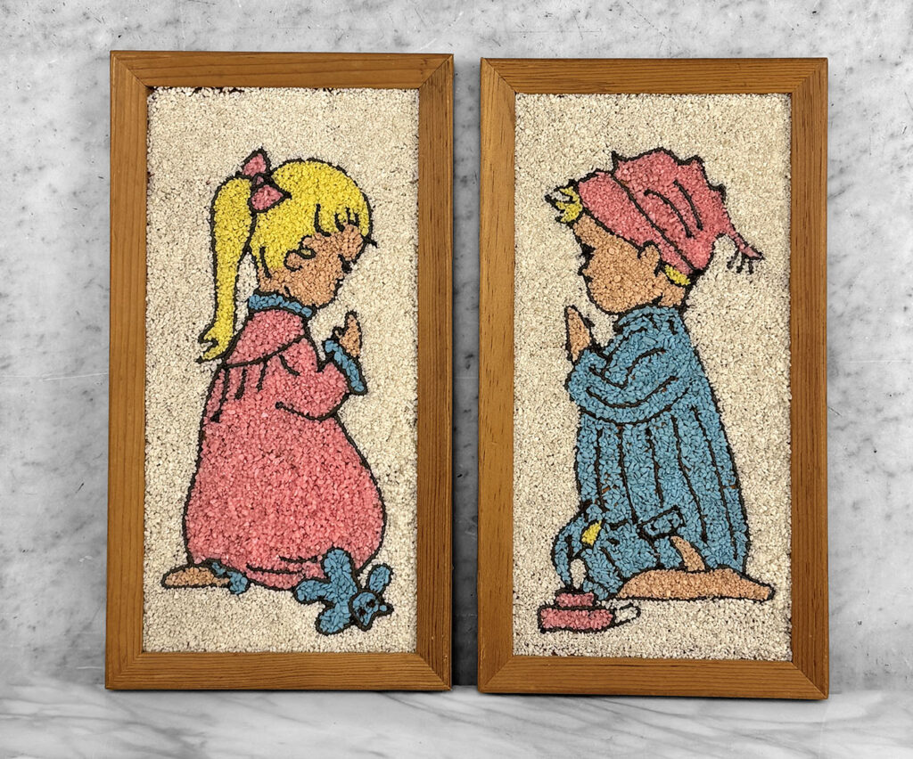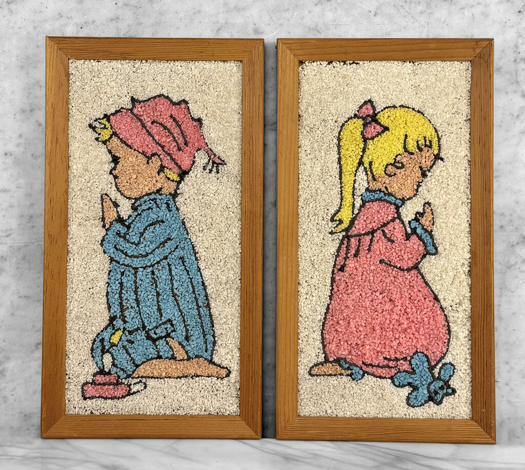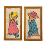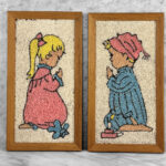 Mid-Century Mosaic Gravel Art Little Boy & Girl Wall Art – A Pair