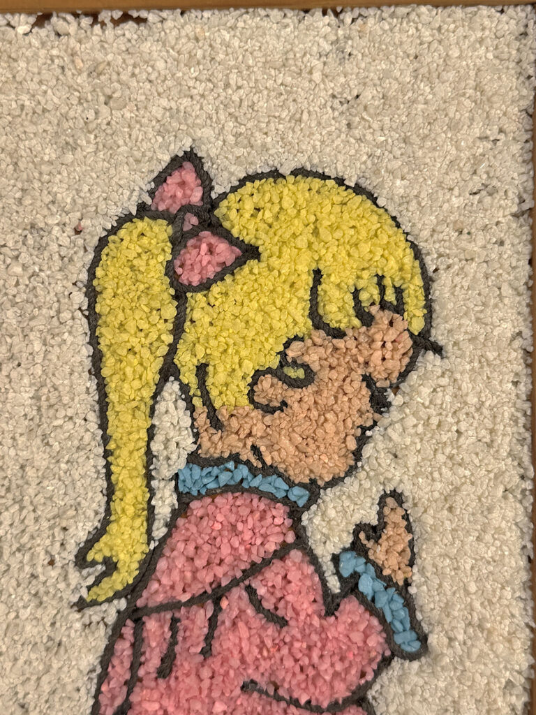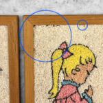 An area of missing gravel can be seen along the girl plaque. This area has been circled in our photo gallery to reference.