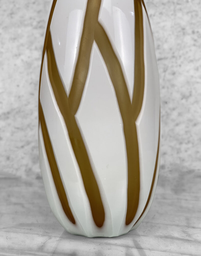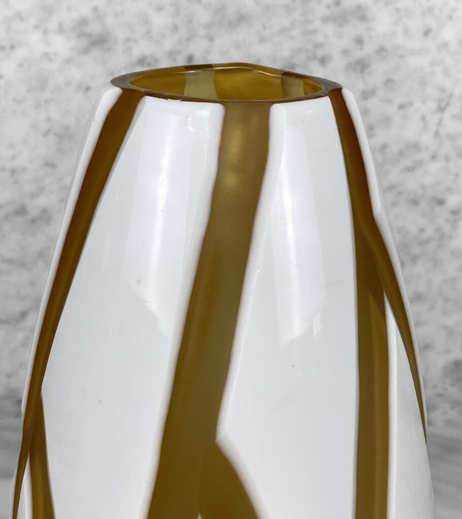 Mid-Century Orange & White Sculpted Art Glass Vase, c. Mid 20th Century
