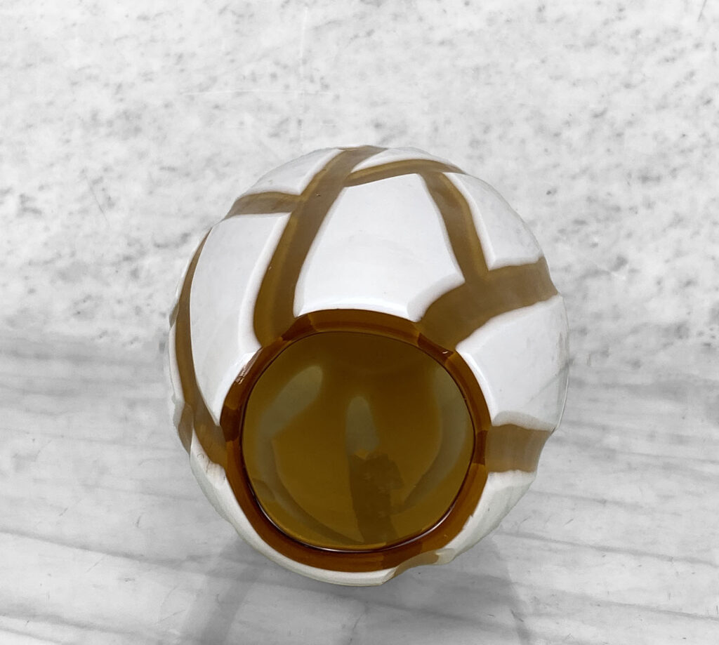 Hand Blown Orange Satin Glass with a Polished White Exterior