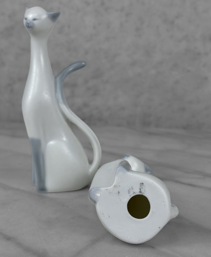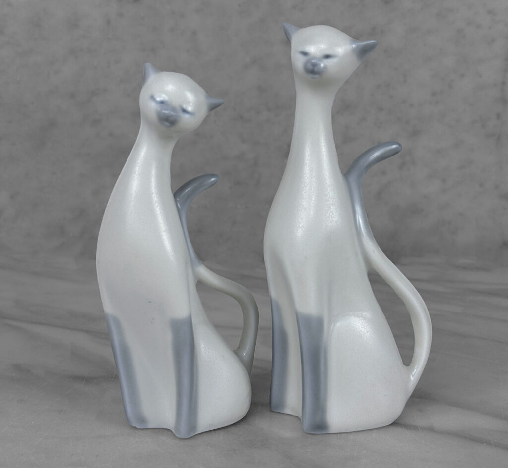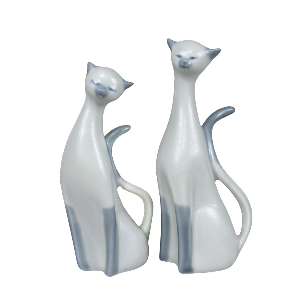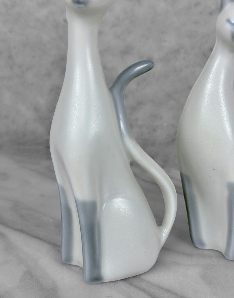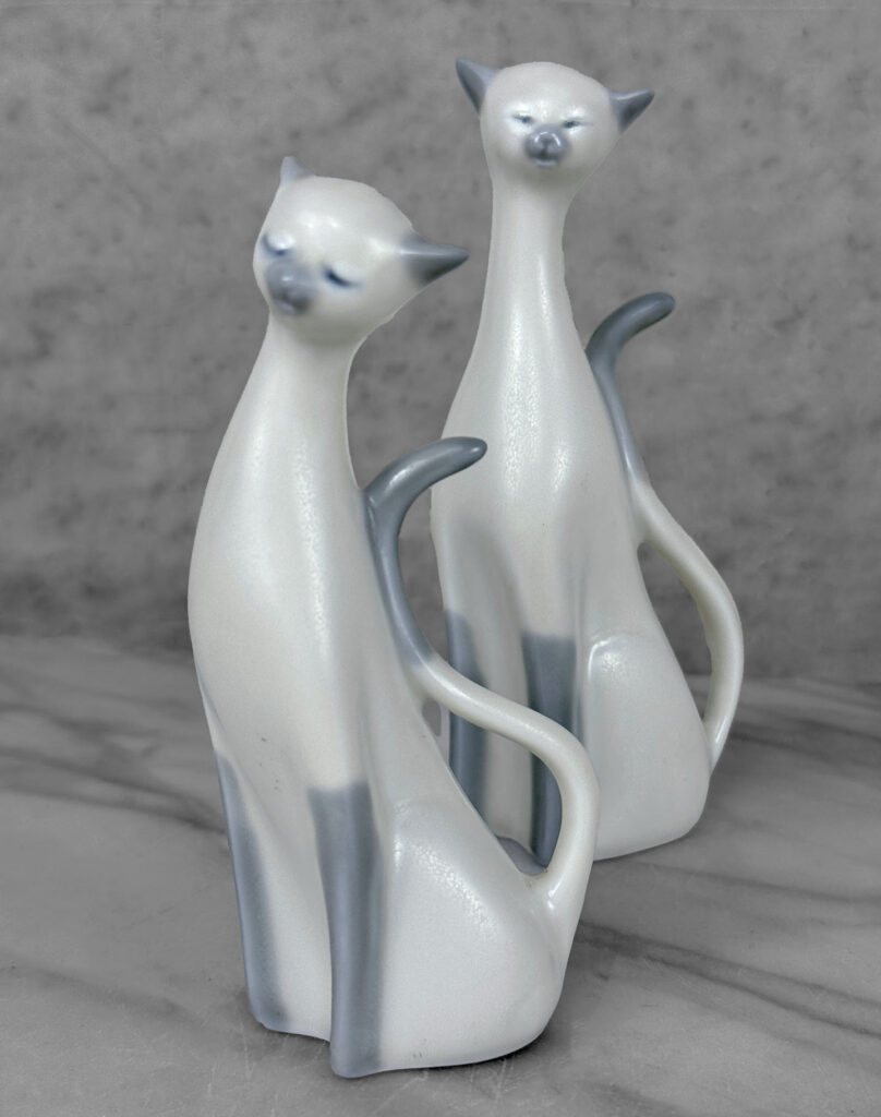 Mid-Century Atomic Porcelain Siamese Cat Sculpture – A Pair