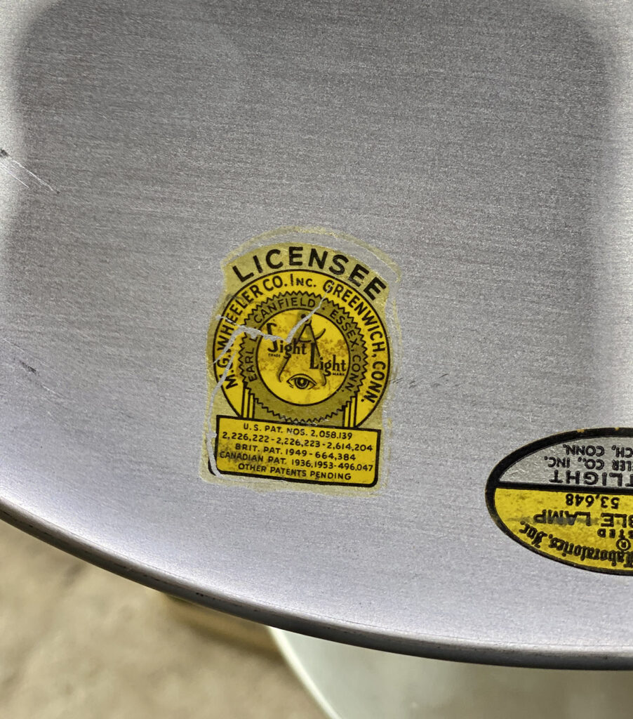 - Original M.G Wheeler Sight Light Label on Underside of the Shade