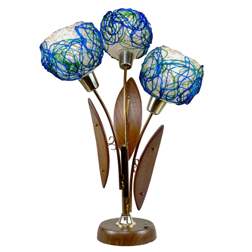 - 3 Original Blue, Green & White Spaghetti Lucite Globes – 9″