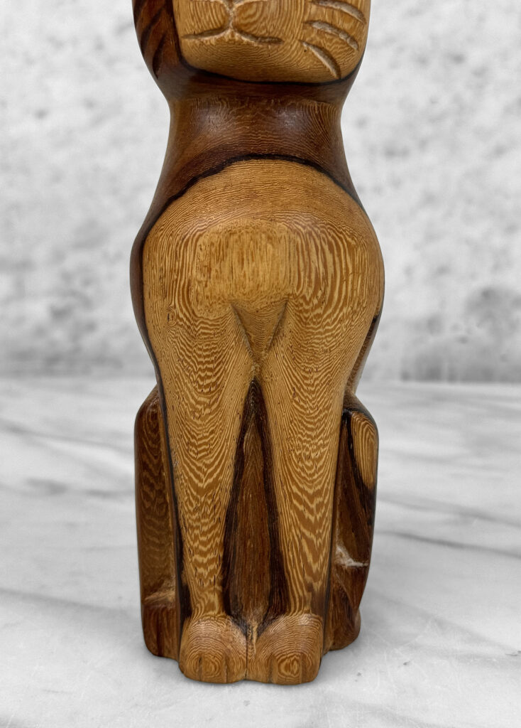 This Teak Carved Cat is in overall good condition without any cracks or repairs shown.
