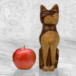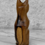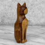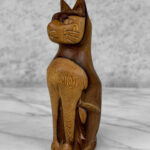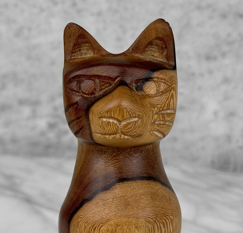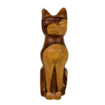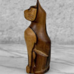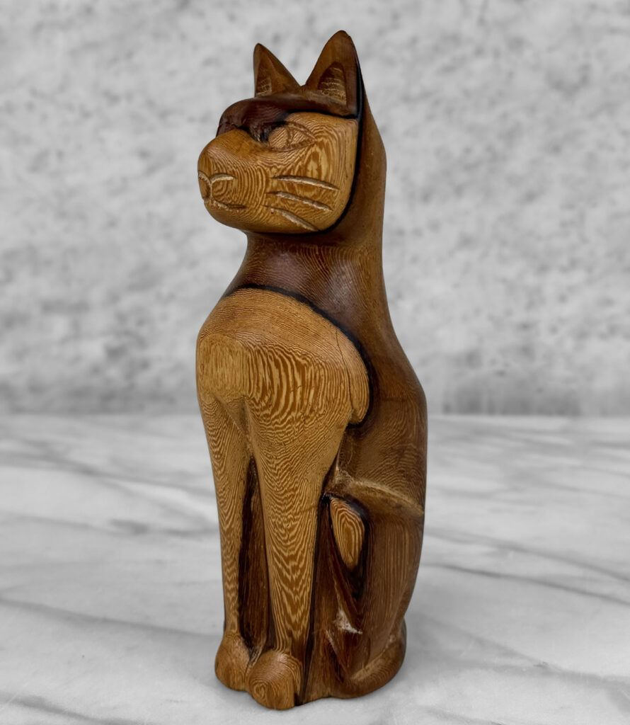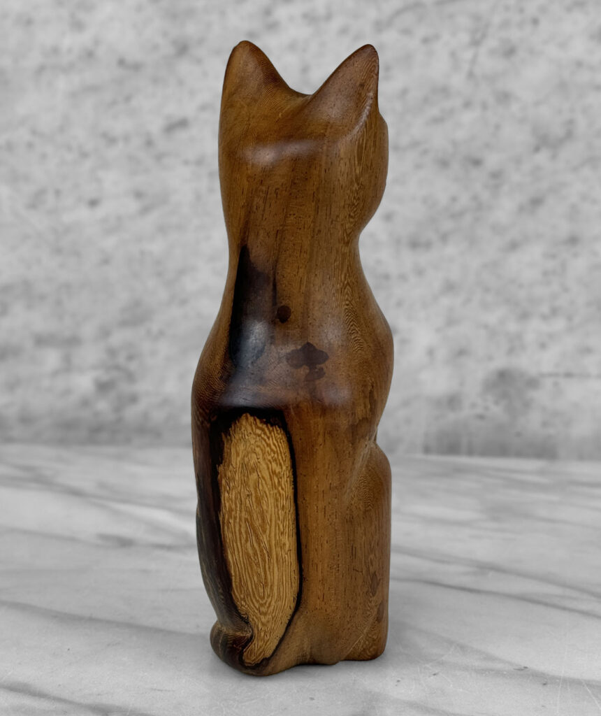 Vintage 8″ Teak Carved Cat Sculpture, c. Mid 20th Century