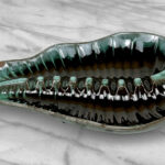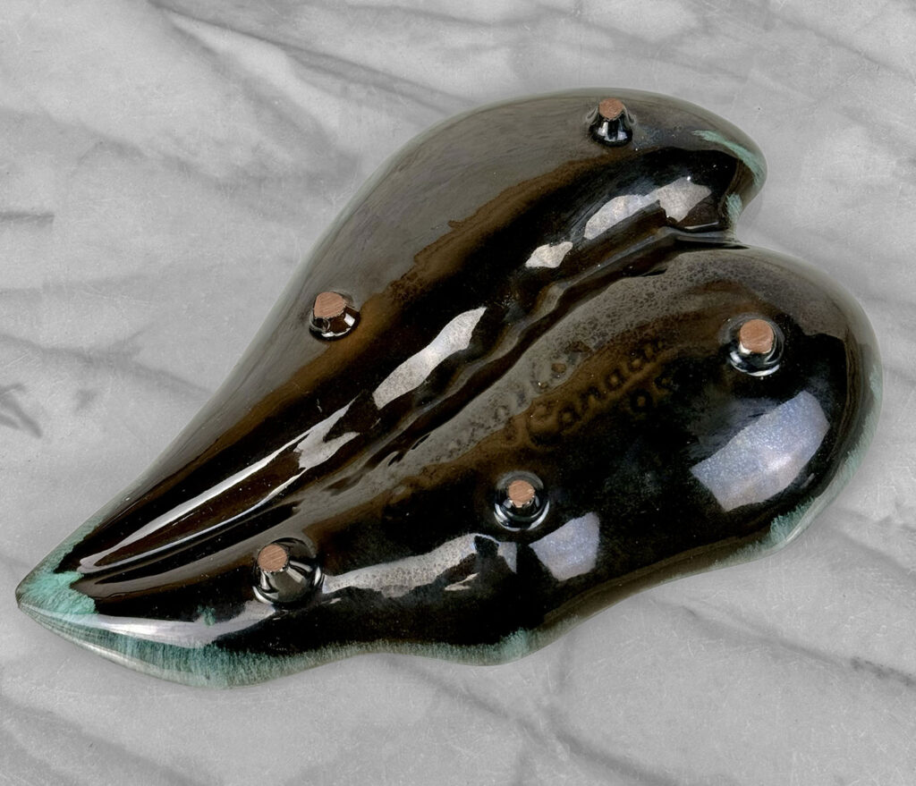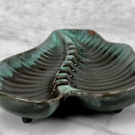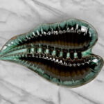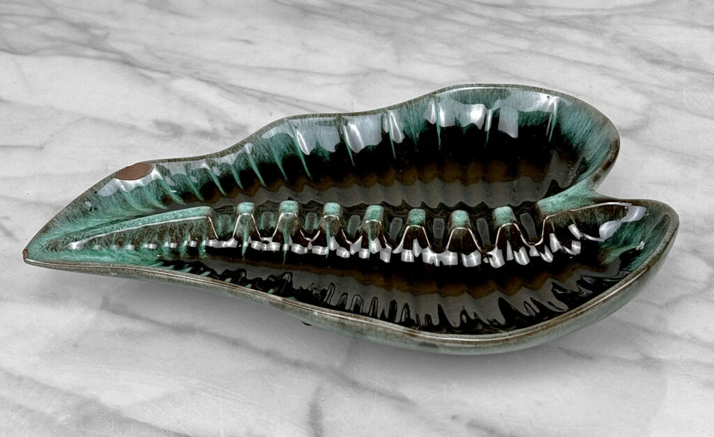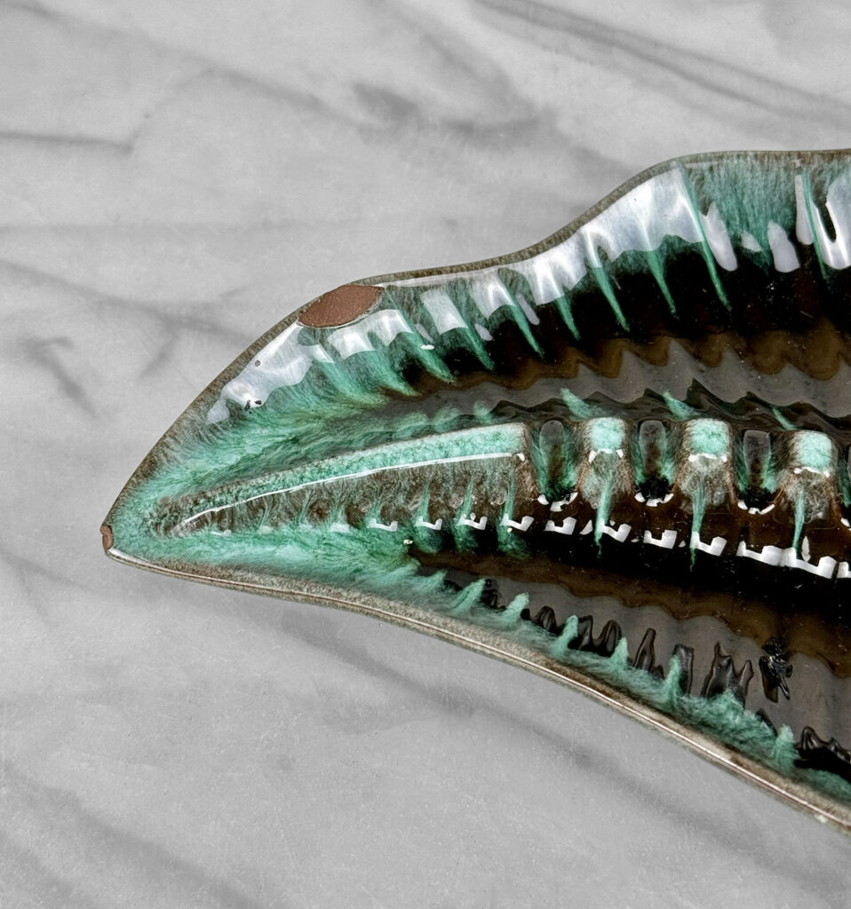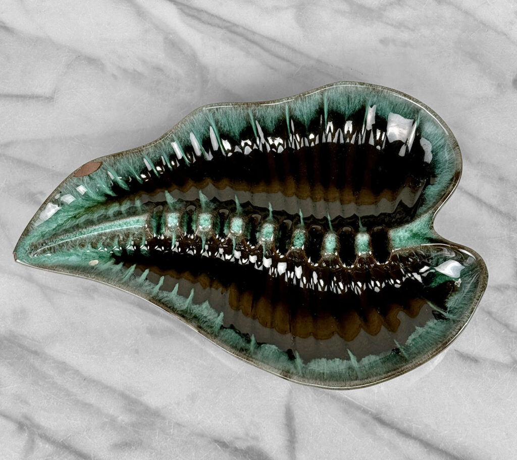 Mid-Century Porcelain Turquoise Drip Art Pottery Foliage Leaf Cigar Ashtray