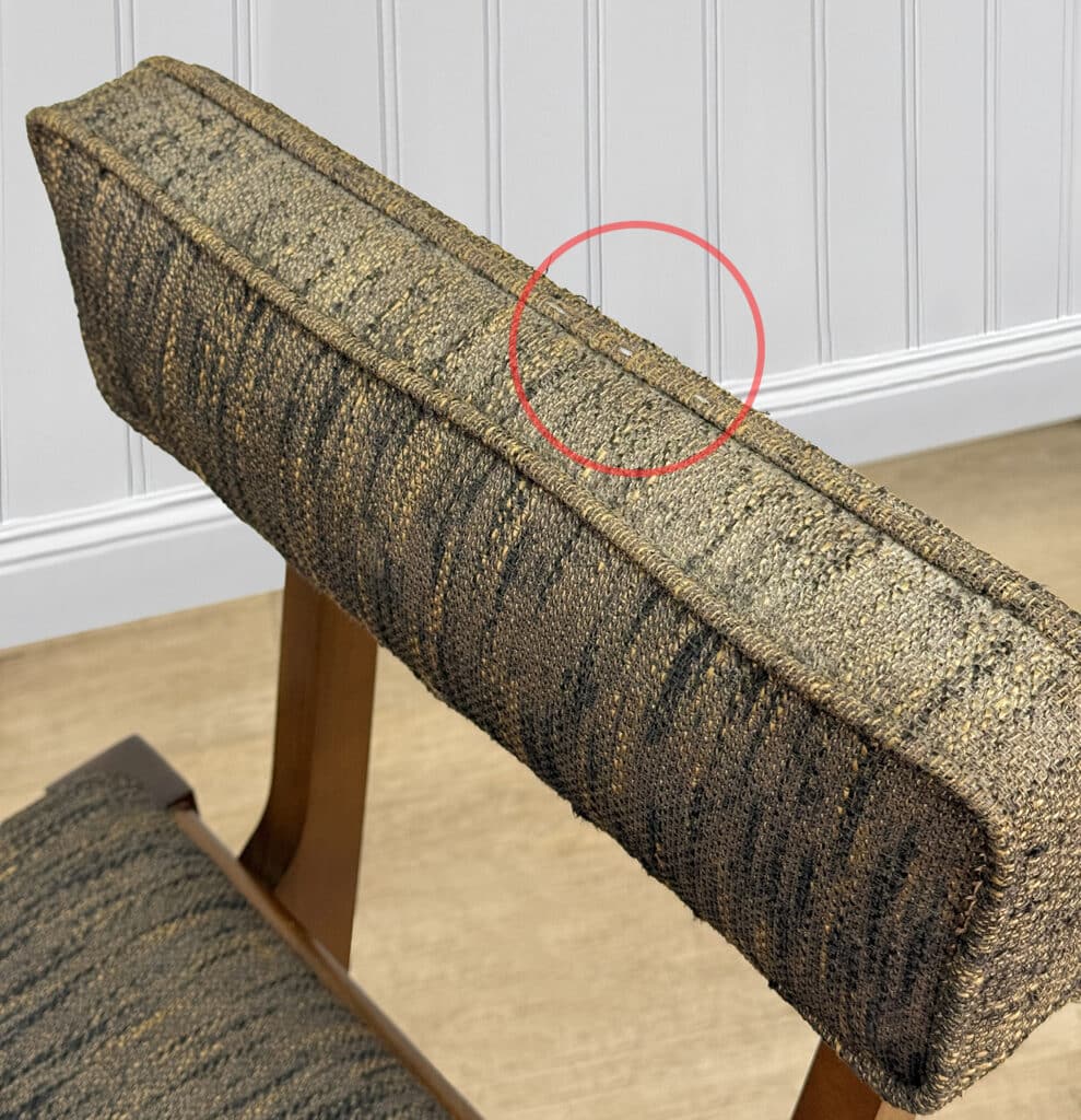 Overall good condition, solid, sturdy and makes a great daily seat. Mild areas of wear to the upholstery can be seen, but nothing major. These areas are circled in our photo gallery to reference.