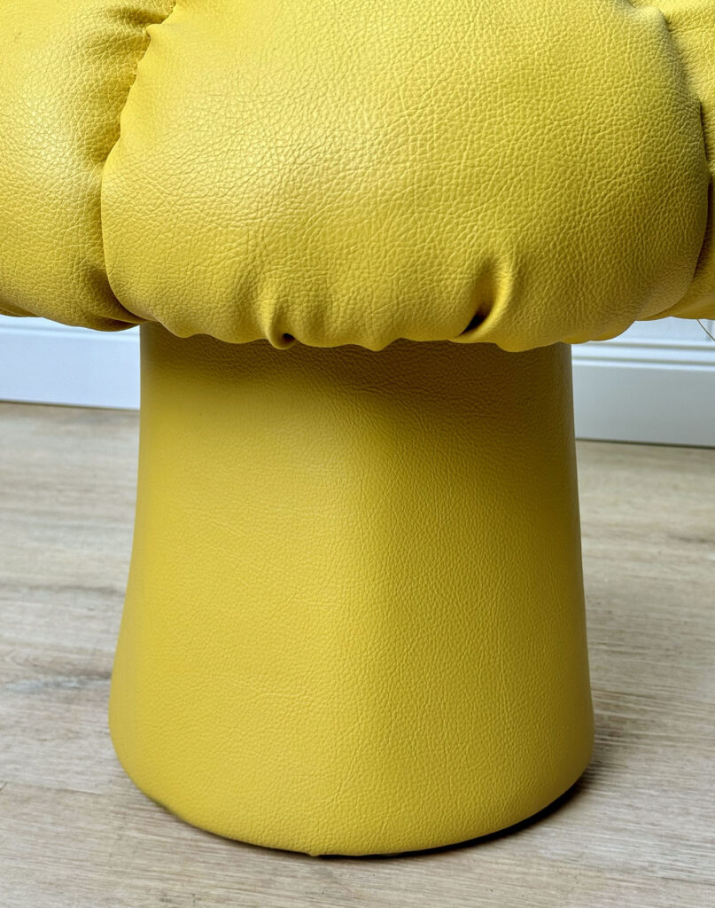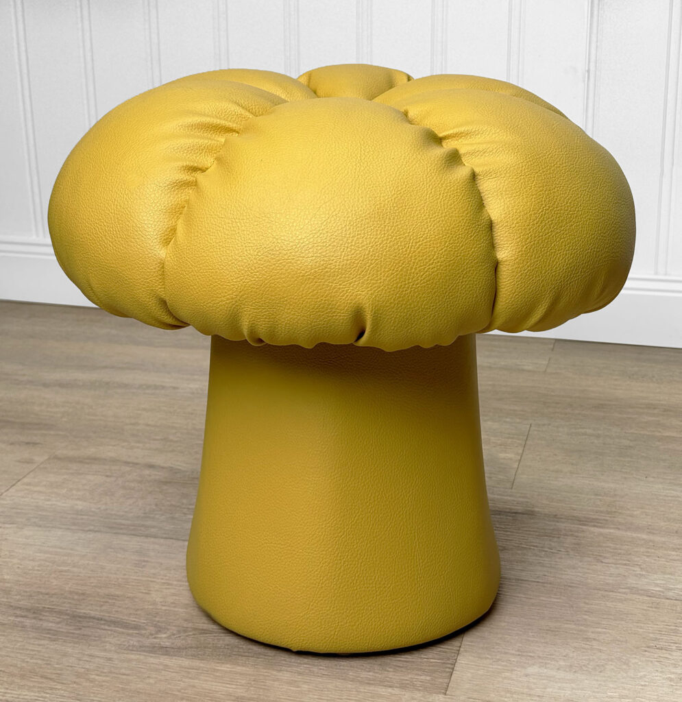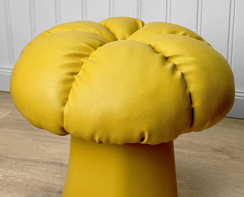 Mid-Century Yellow Pedal Tuft Mushroom Seat Ottoman