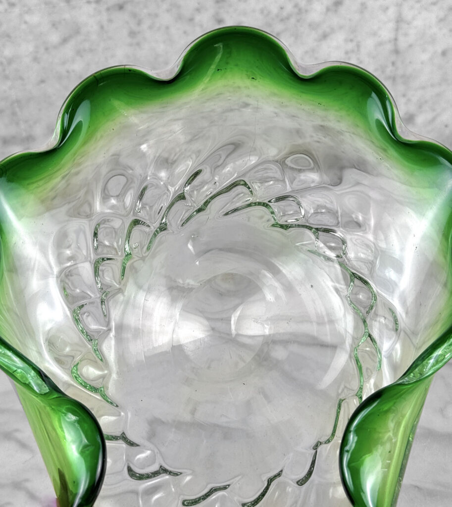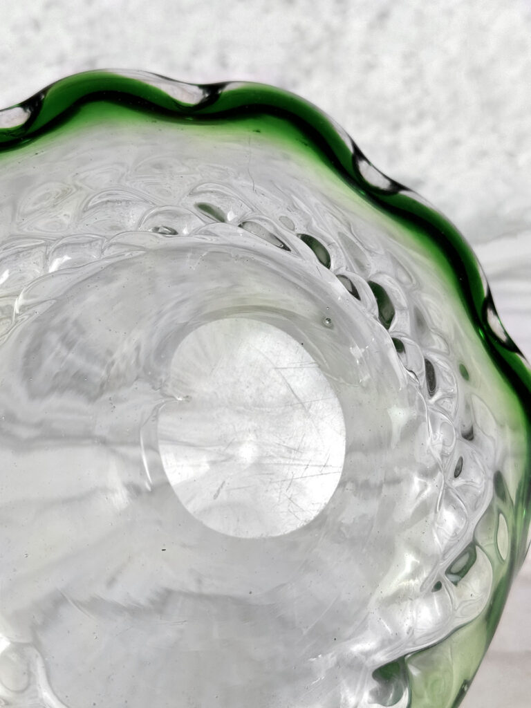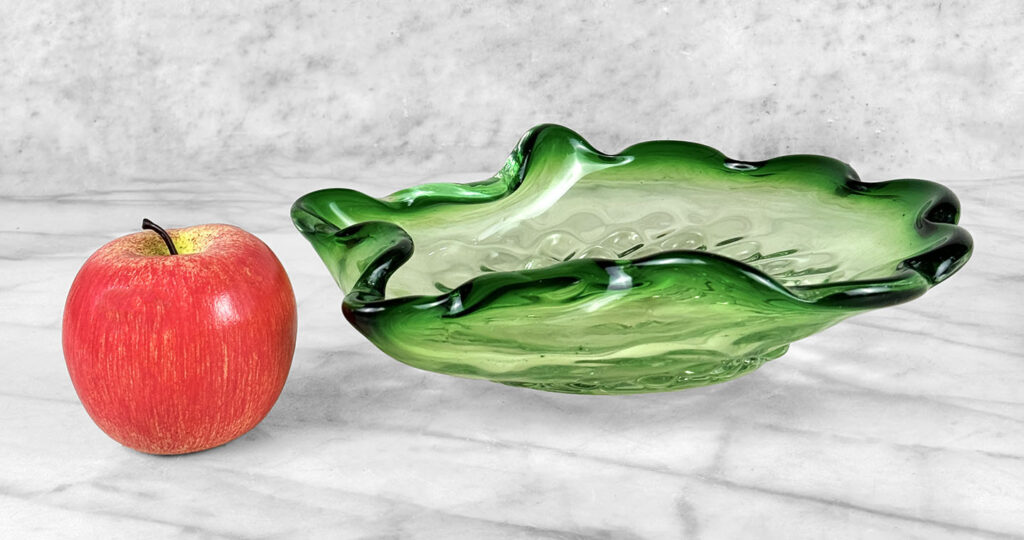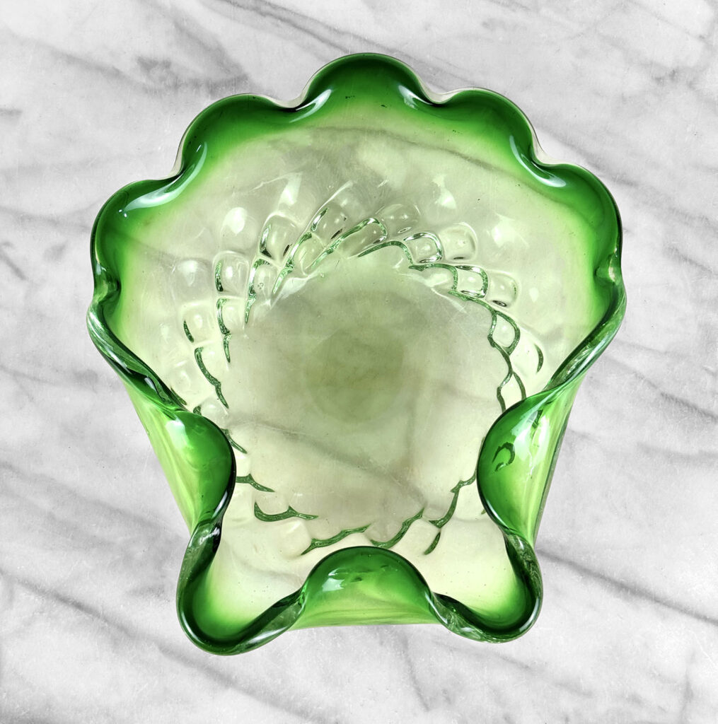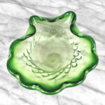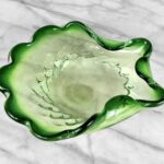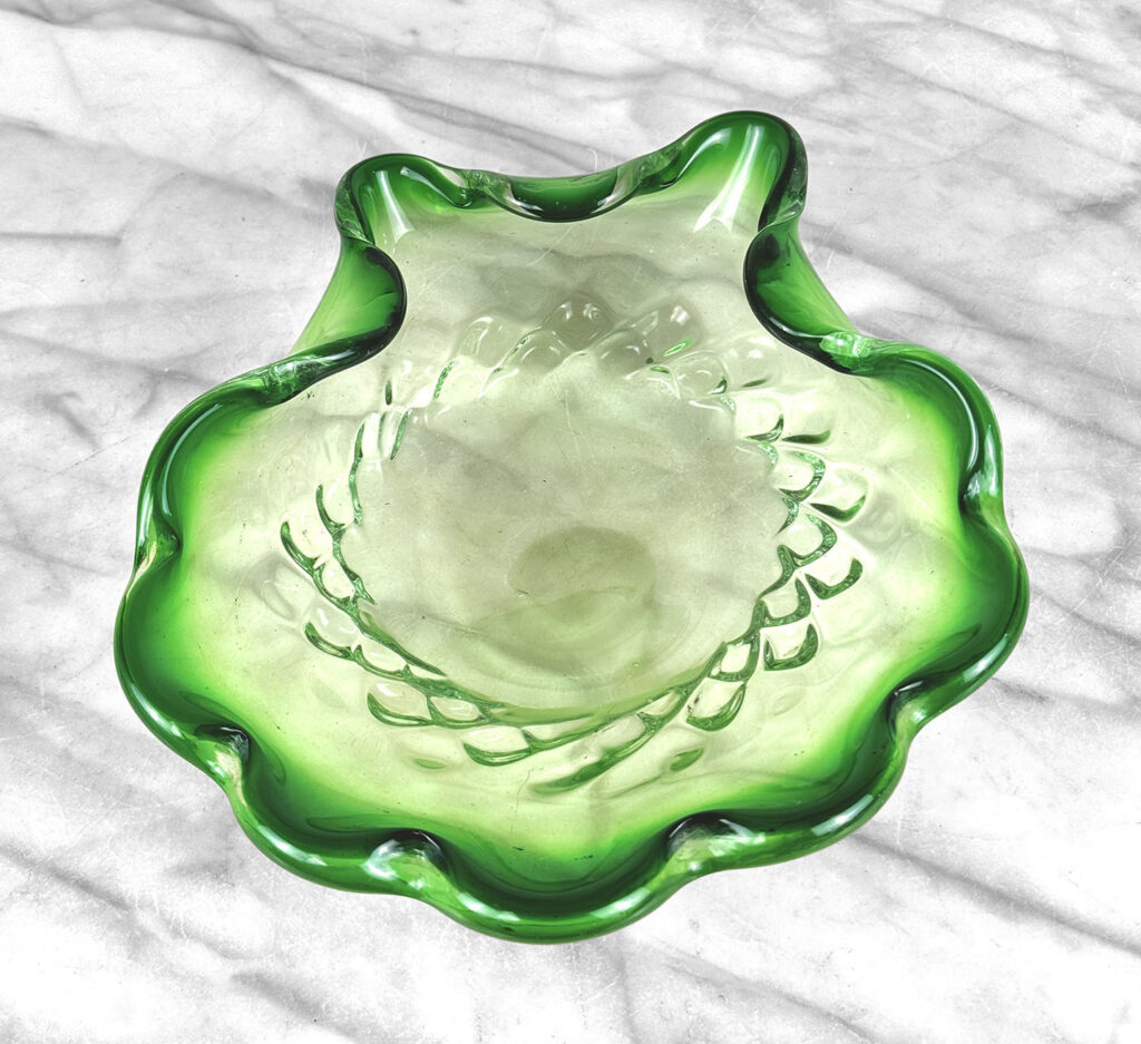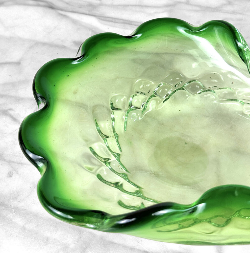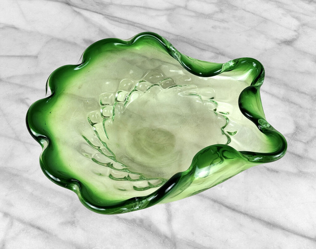 Vintage Italian Murano Green Art Glass Scallop Shell Bowl, c. Mid 20th Century