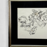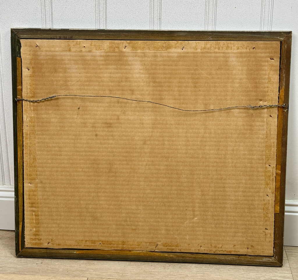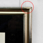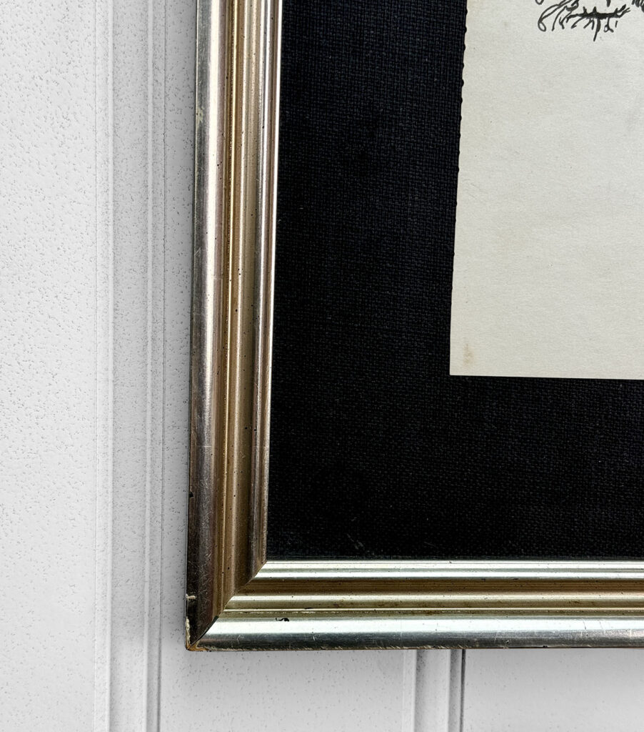 A series of discoloration can be seen to the paper. The frame shows areas of wear along the corners.