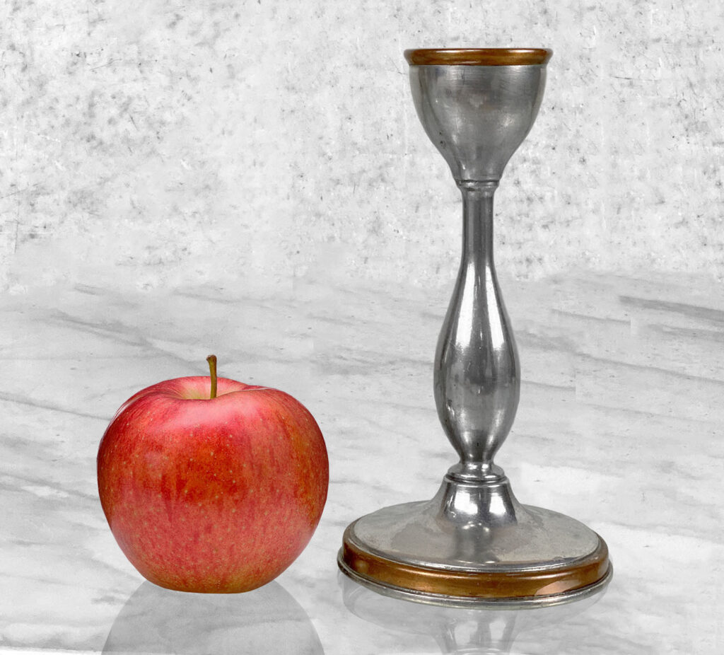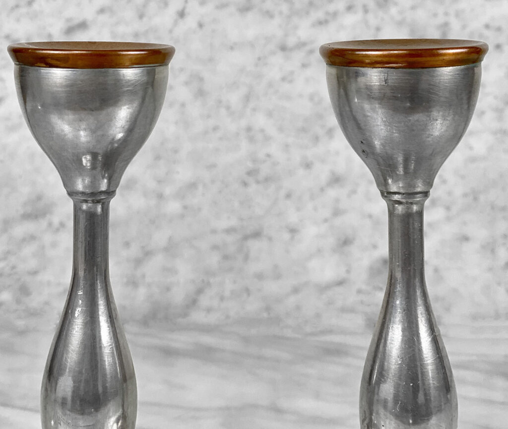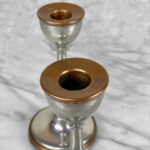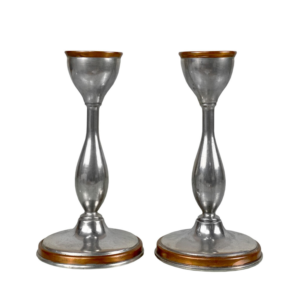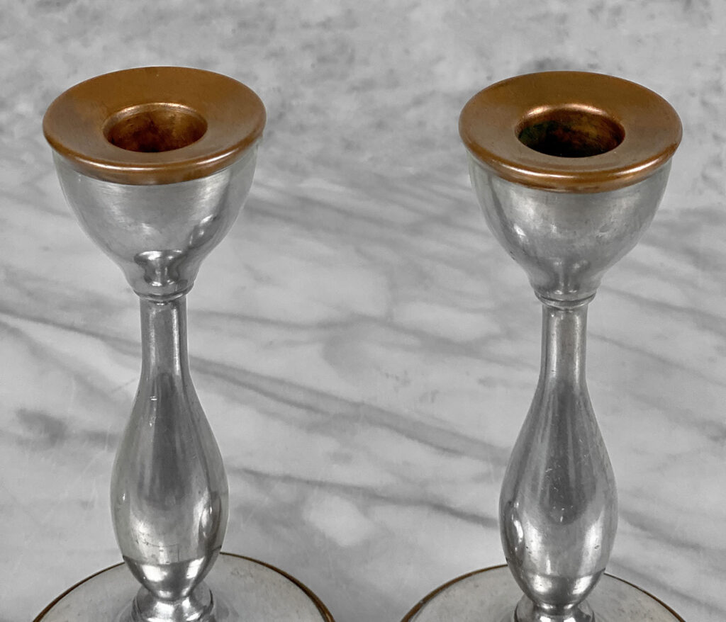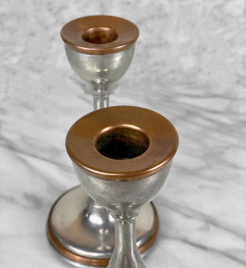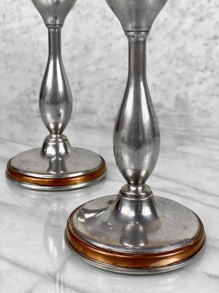 Antique Traditional Pewter and Copper Candlestick Holders, A Pair, c. Early 20th Century