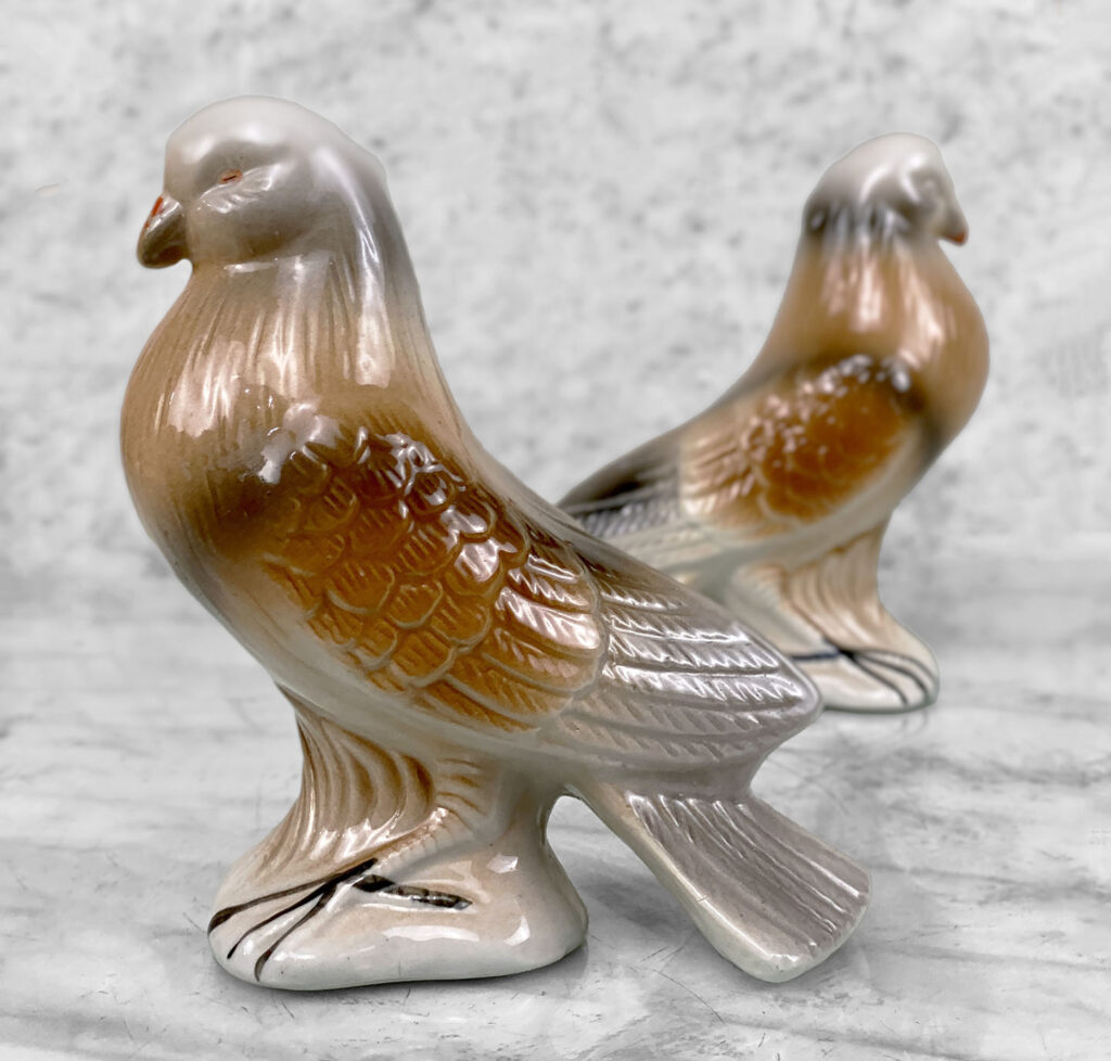 Vintage Traditional Porcelain Homing Pigeon Bird Sculpture – A Pair