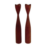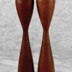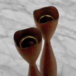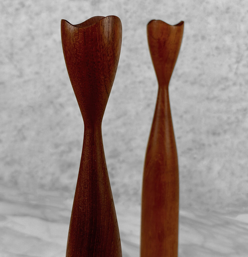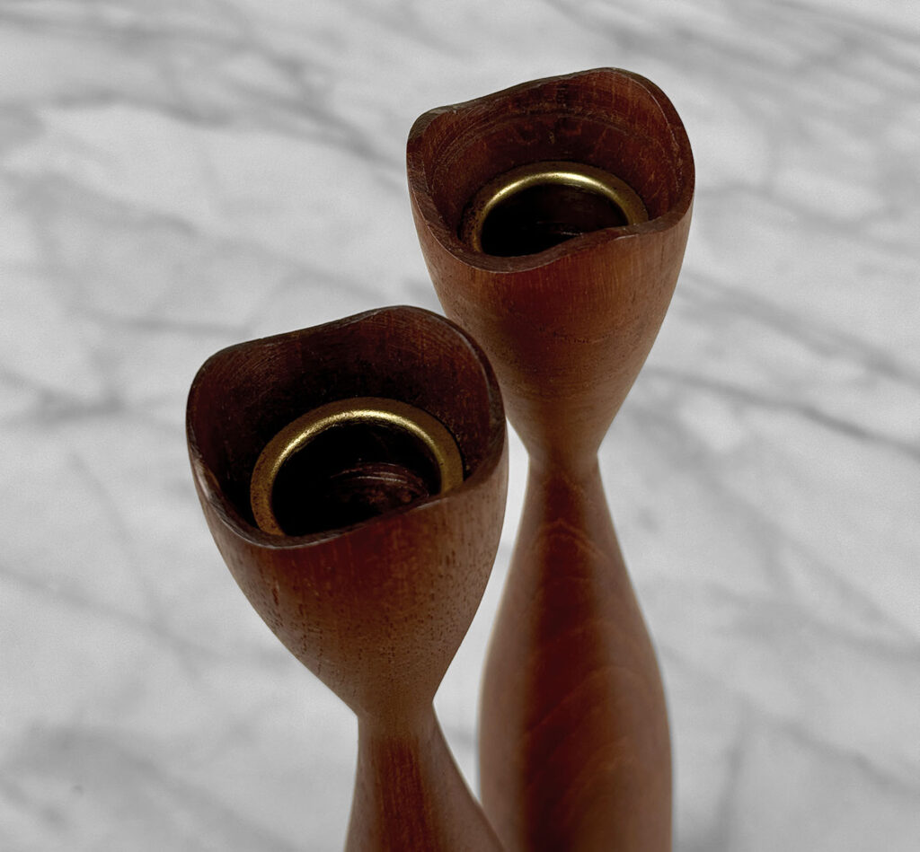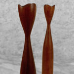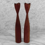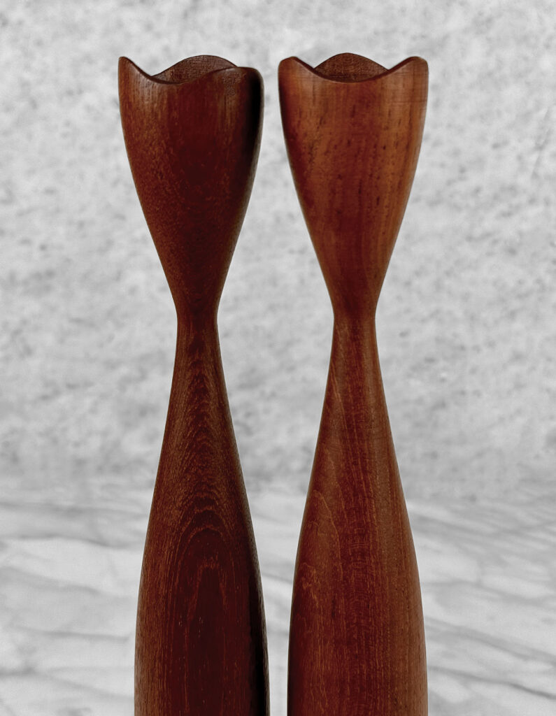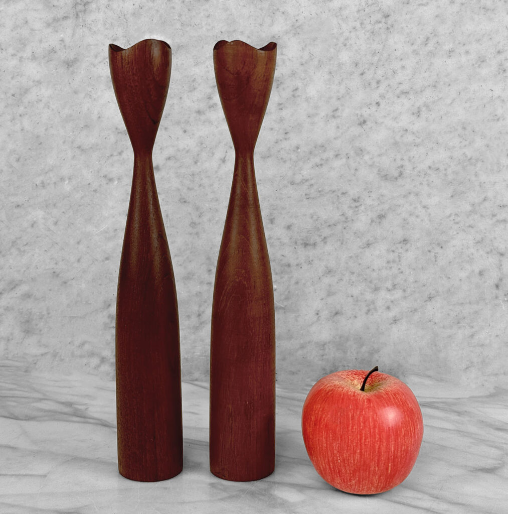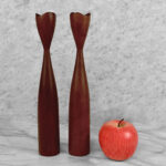 This Pair of Teak Candlestick Holders are in overall good condition without any cracks, chips or repairs shown. Signs of previous use can be seen along the interiors. Both Holders are in very good condition.