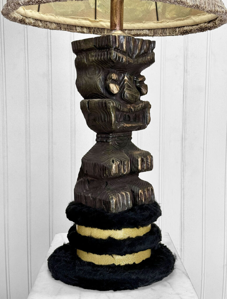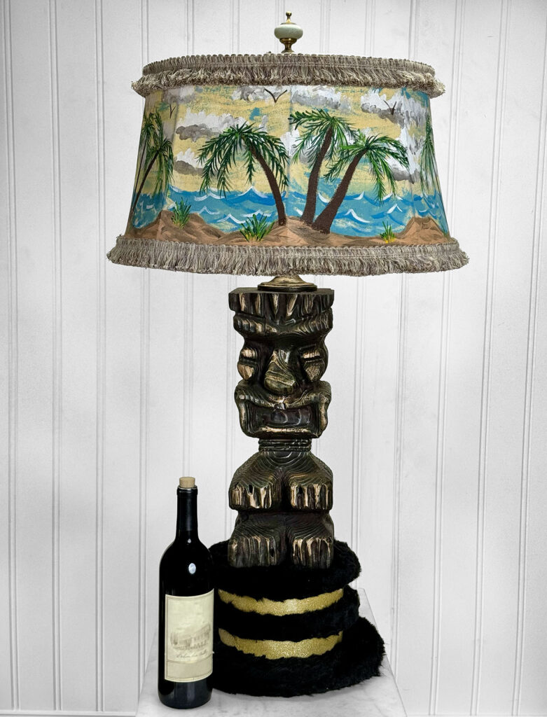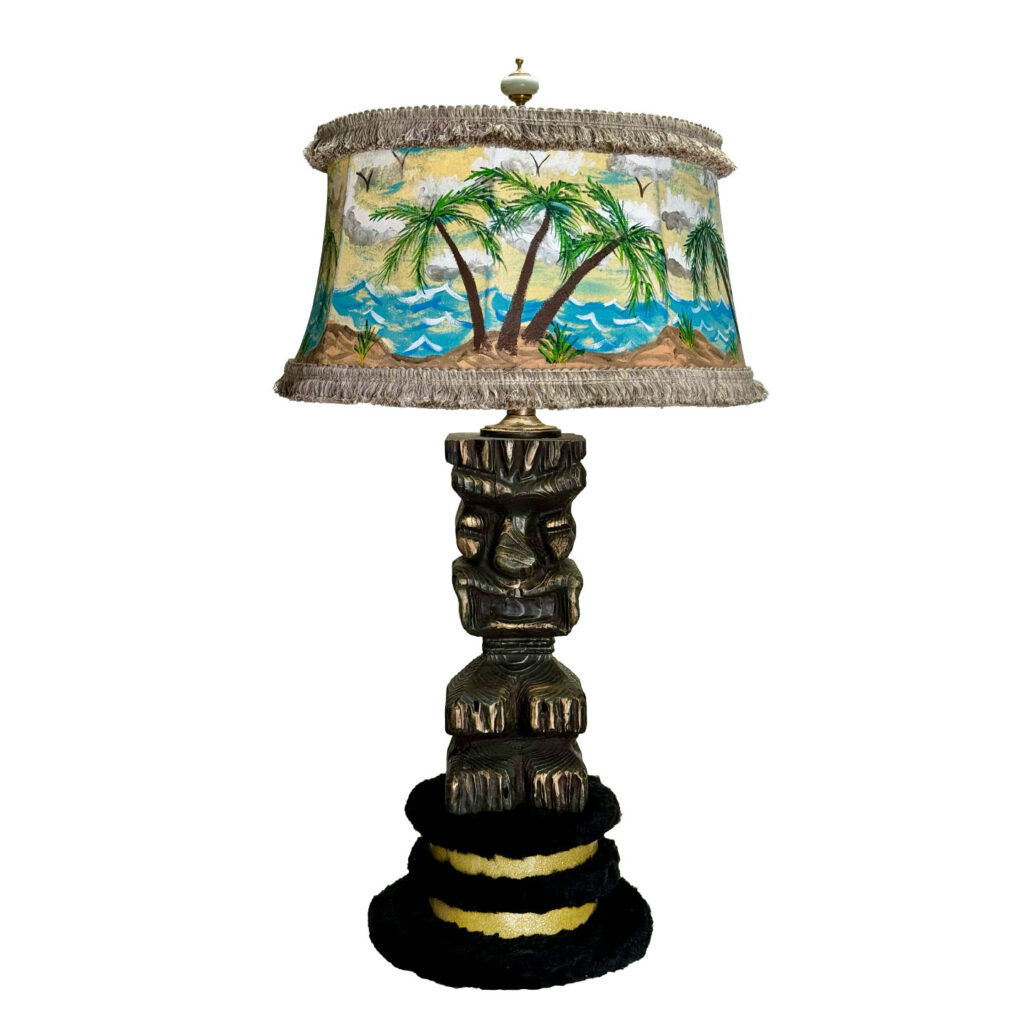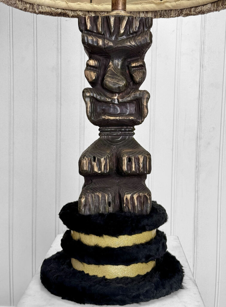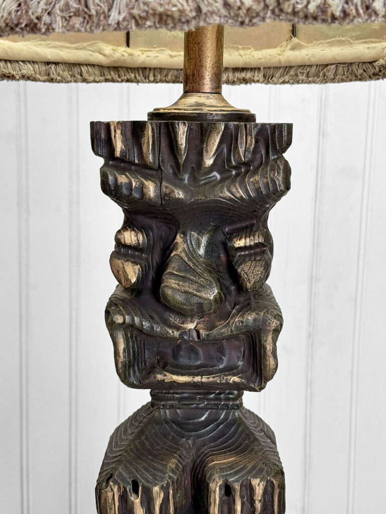 Vintage Polynesian Tiki Wood Carved Figural Table Lamp