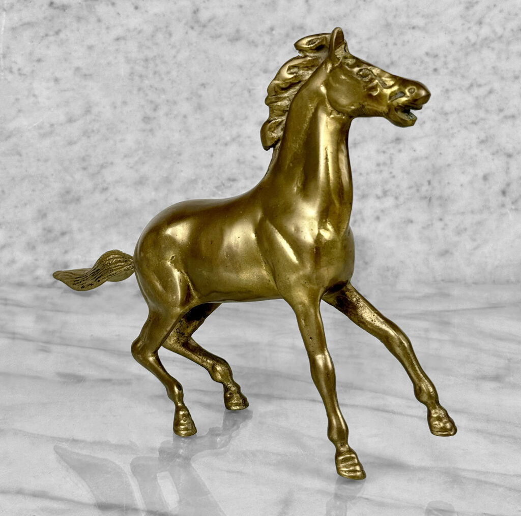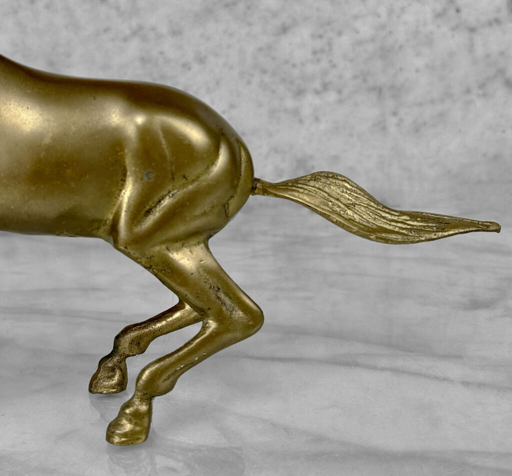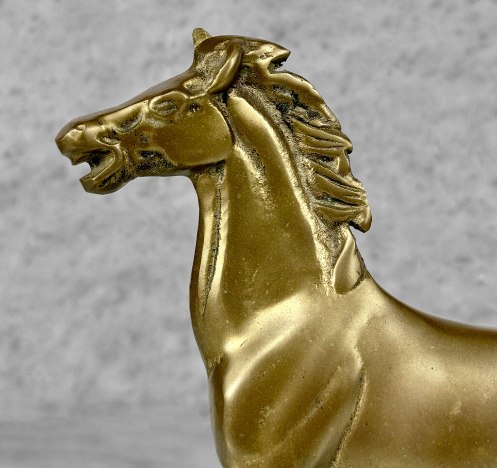 This Brass Horse Sculpture is in overall good condition. The brass is rich in age, showing signs of tarnishing and patina – It’s uncleaned or polished.