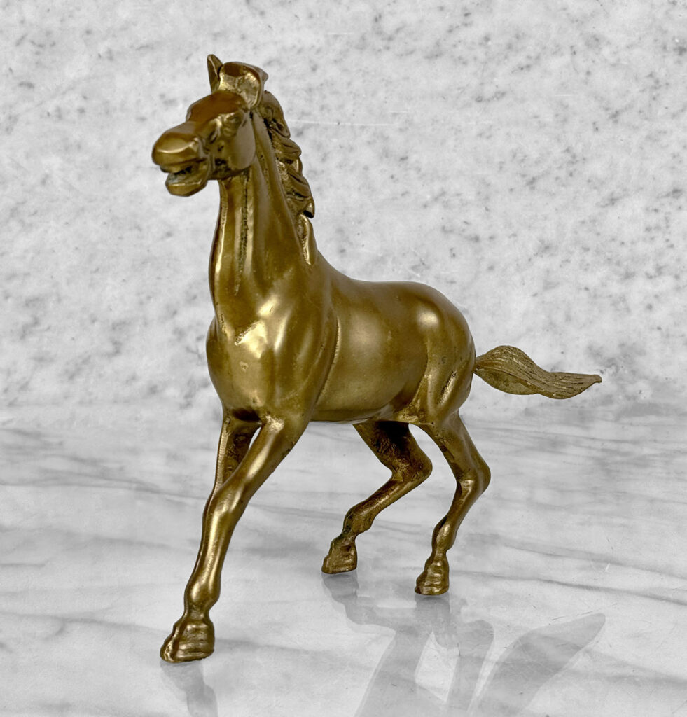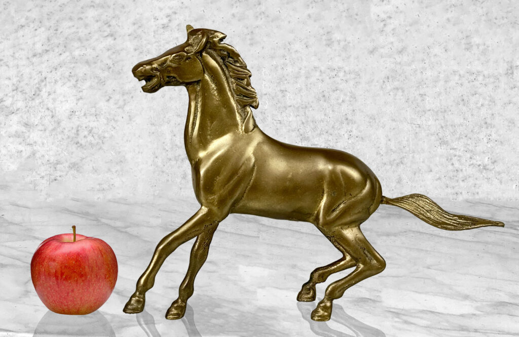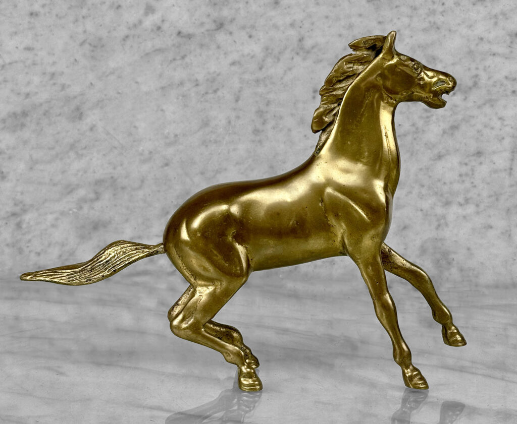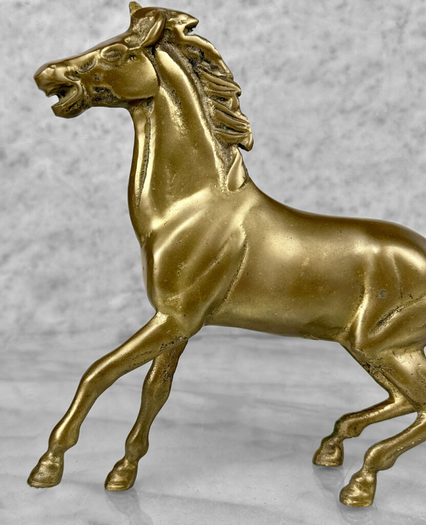 This Brass Horse Sculpture is in overall good condition. The brass is rich in age, showing signs of tarnishing and patina – It’s uncleaned or polished.