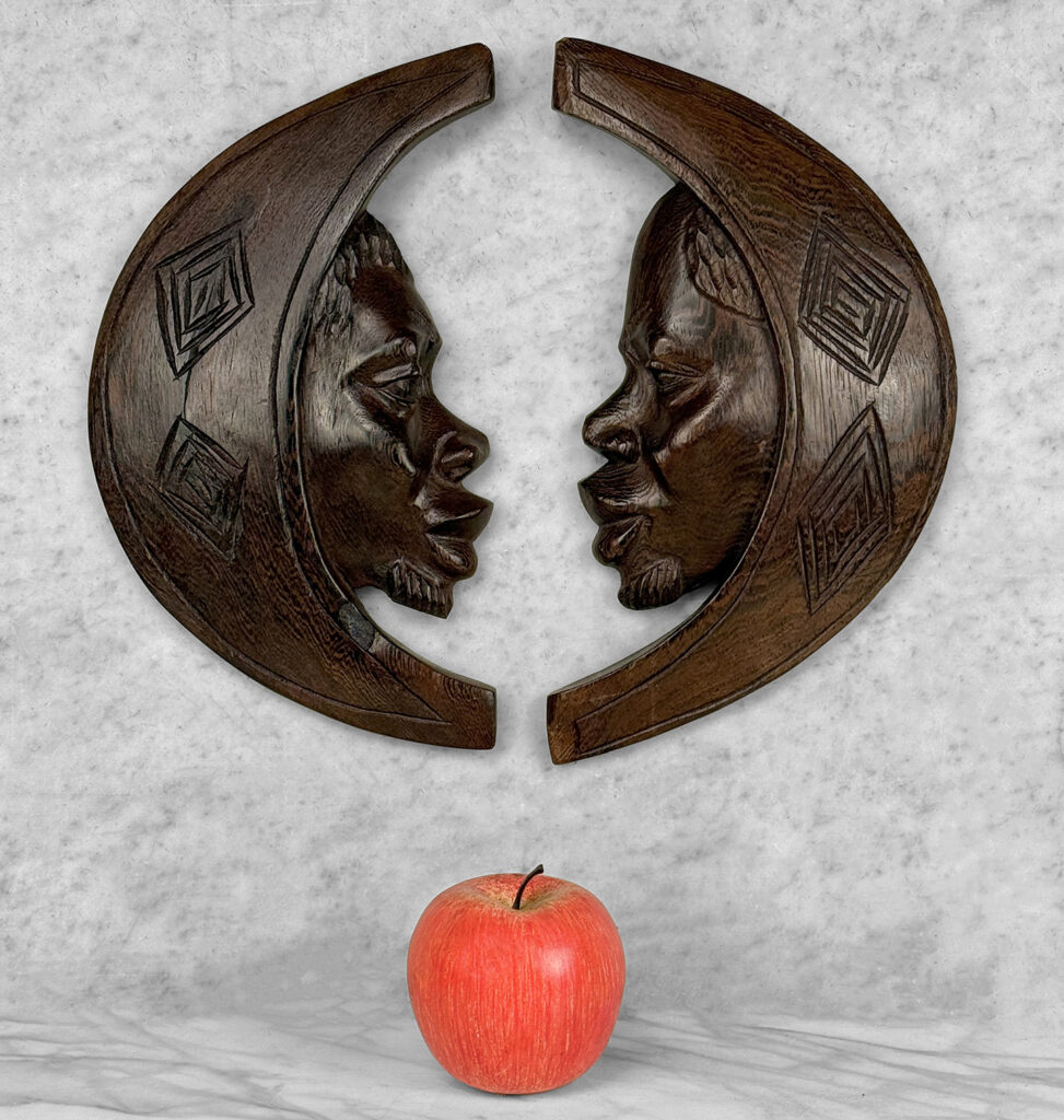 Overall good condition without any repairs shown. A gash to one of the sculptures is shown, this area is circled in our photo gallery to reference.