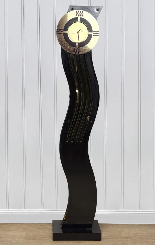 A Postmodern Black & Gold Waved Clock, c. Late 20th Century