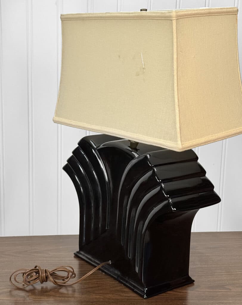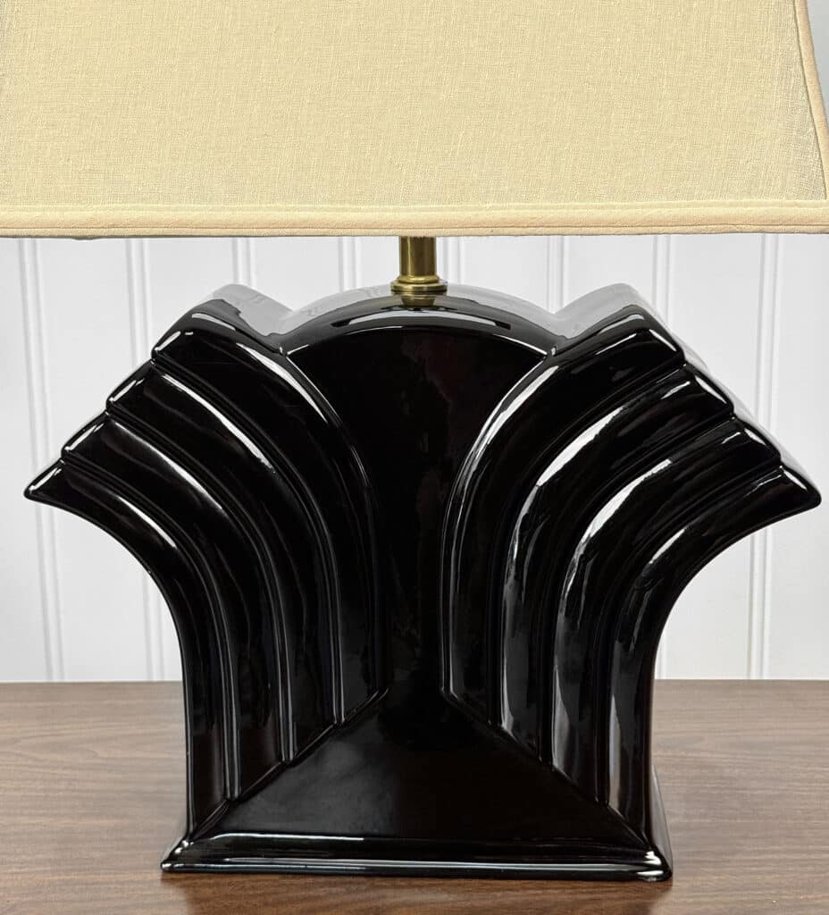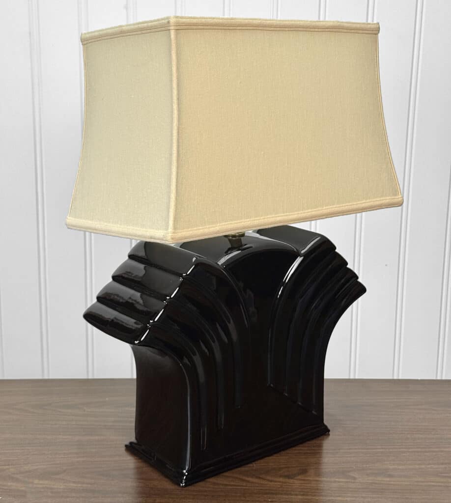 Vintage Art Deco Black Porcelain Waterfall Table Lamp