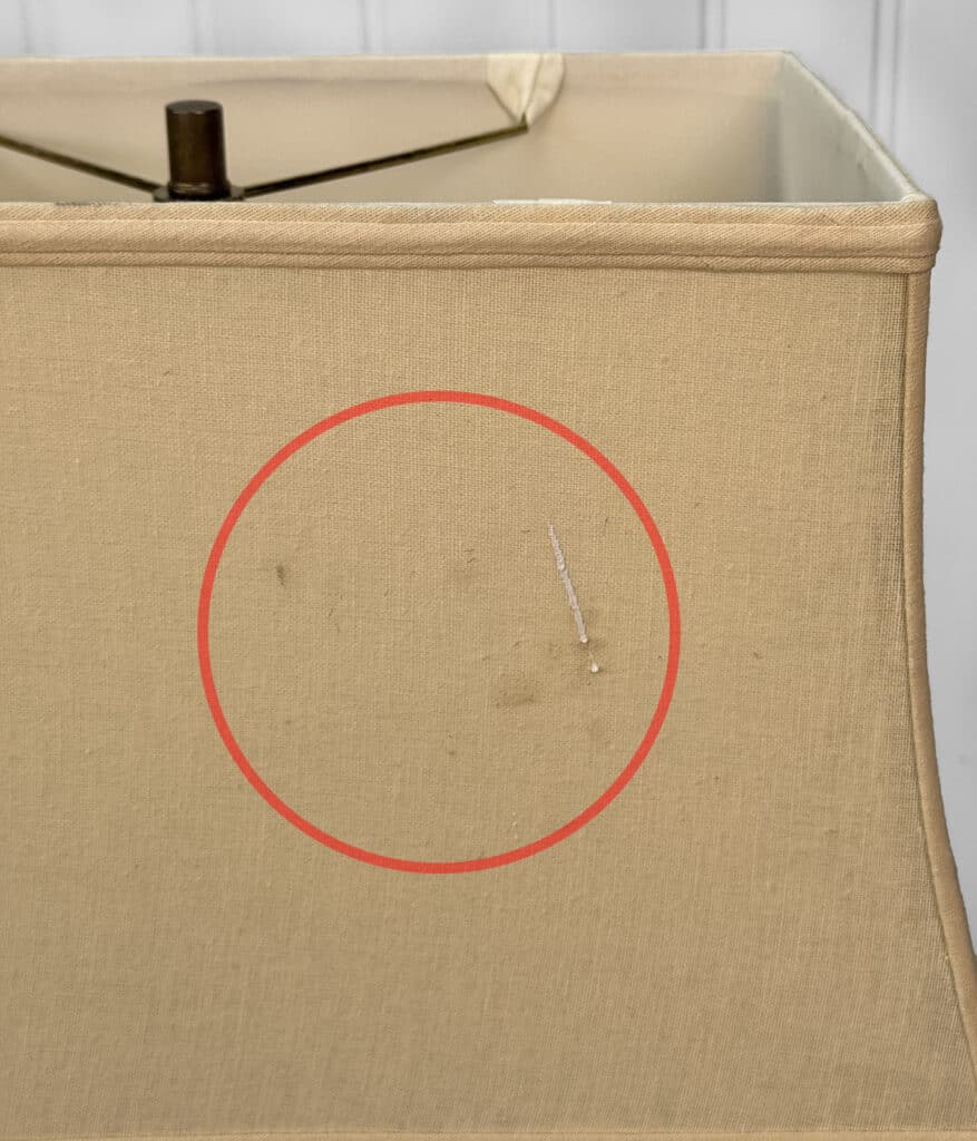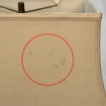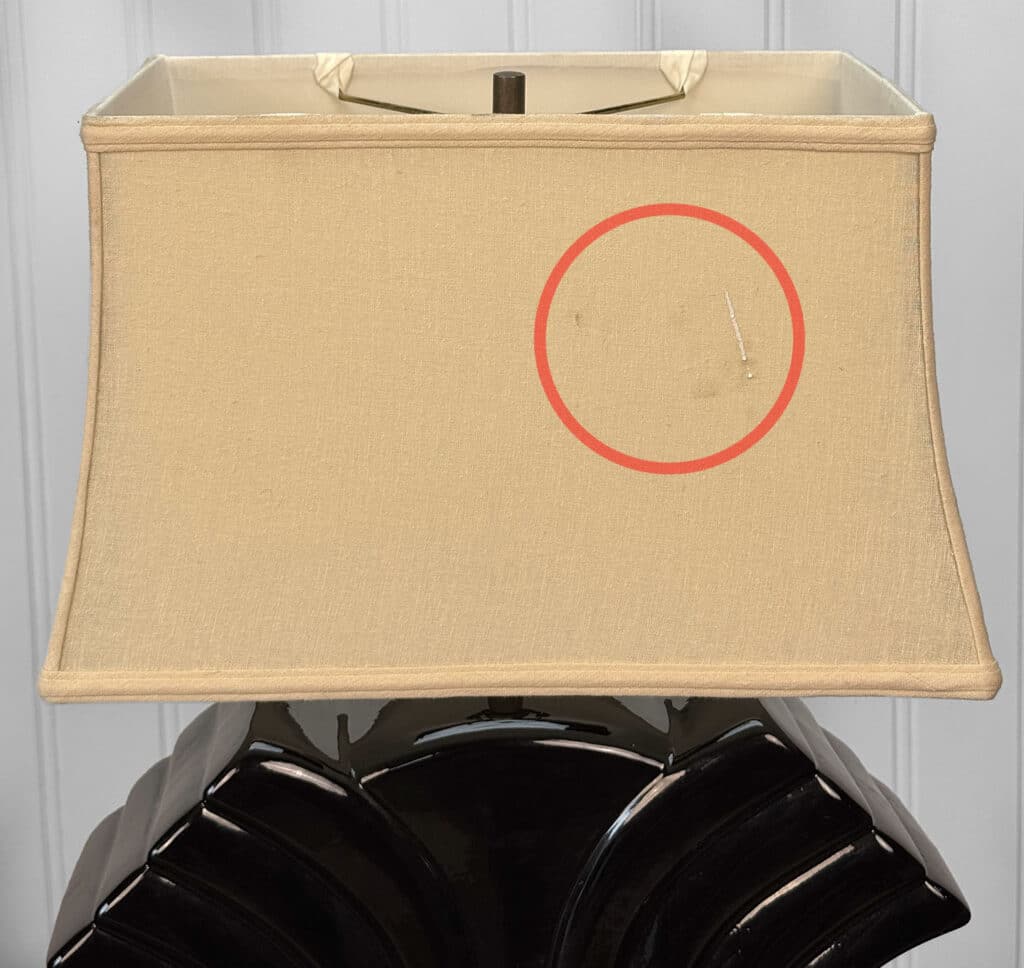 This Lamp is fully tested and works as it should, it does not require rewiring. A chip along the lamps base is shown along the bottom, as well as a blemish/mark to the shade. These areas have been circled in our photo gallery to reference.