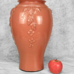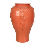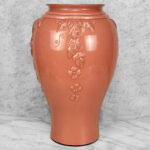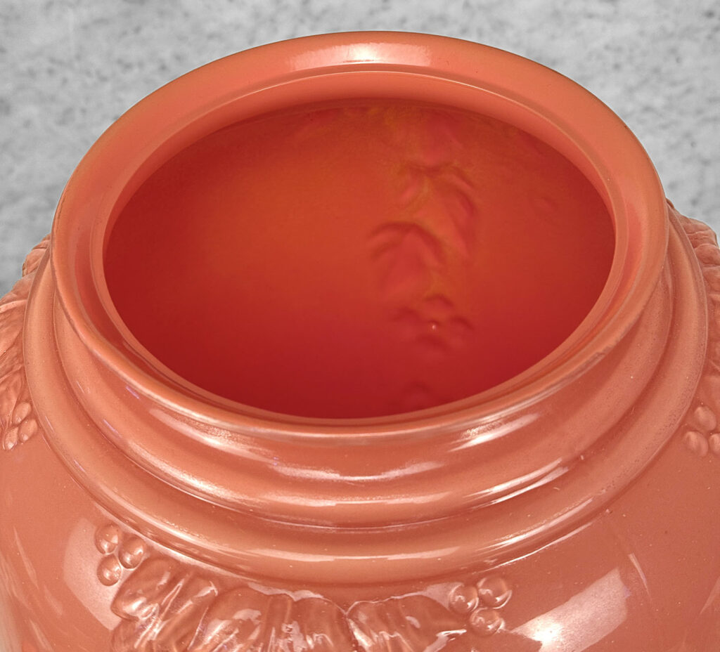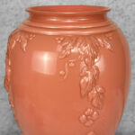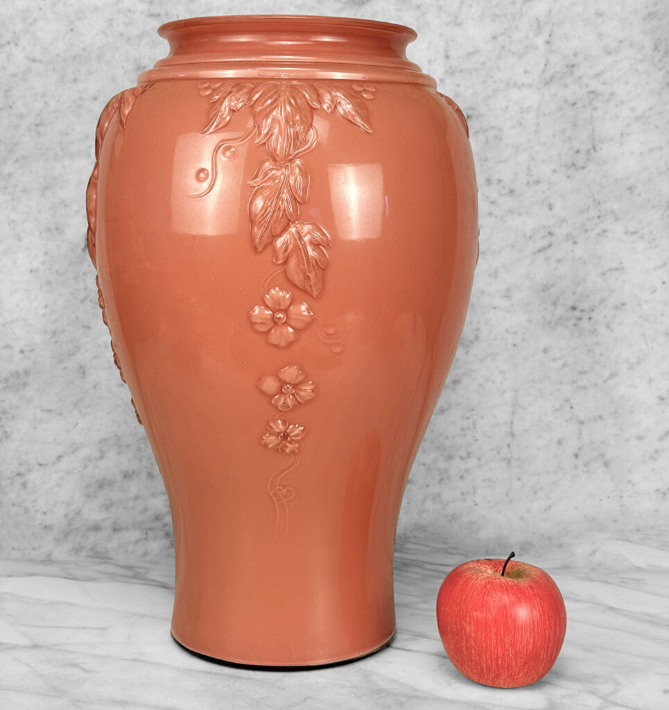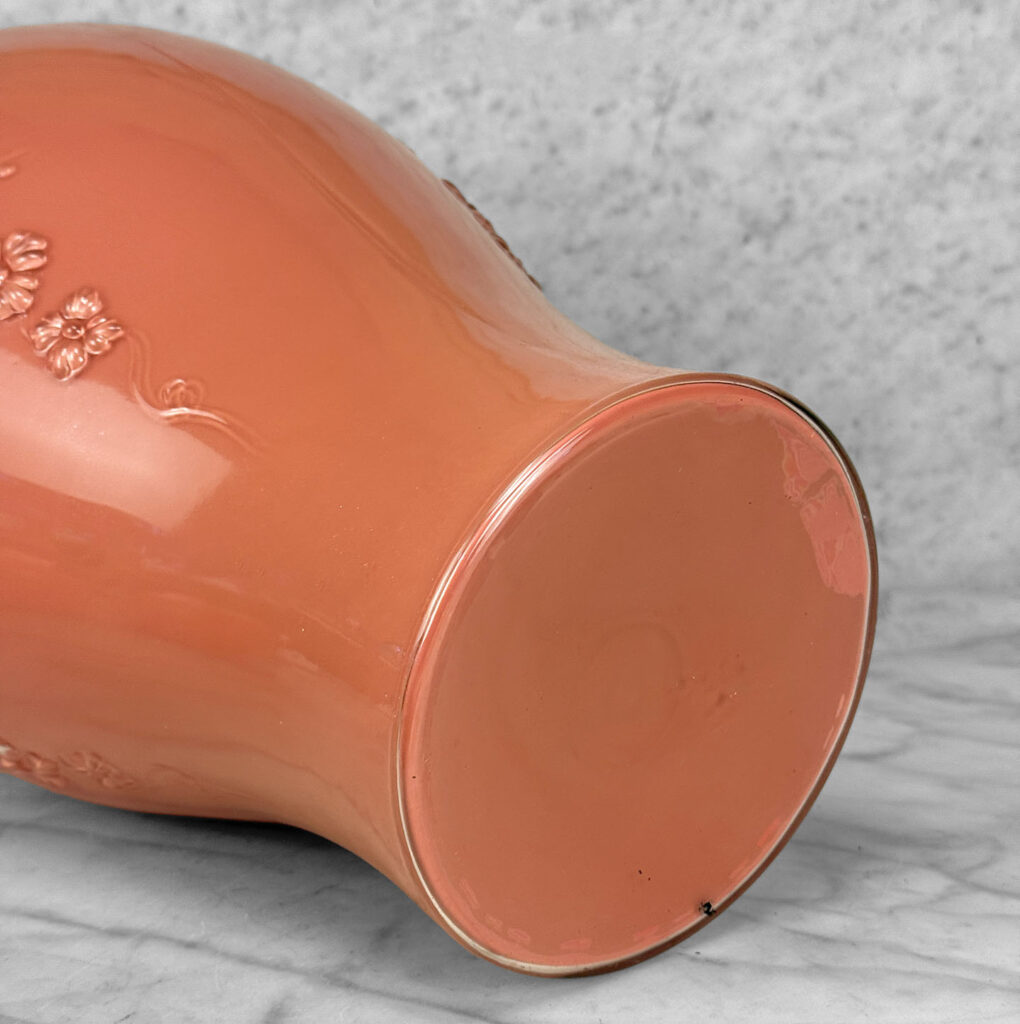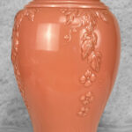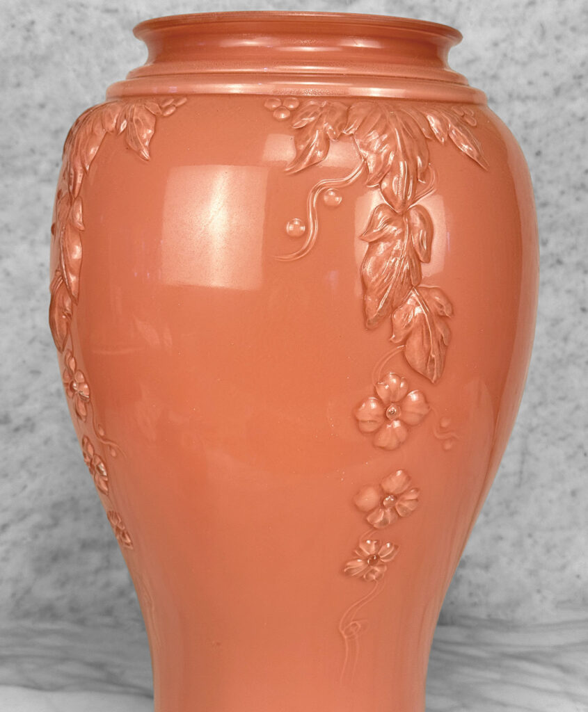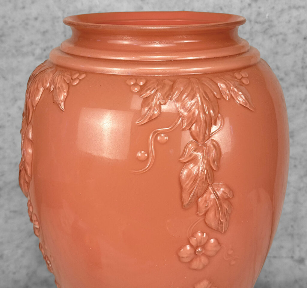 An Art Nouveau Floral Vine Embossed Prairie Pink Glass Vase, c. Mid 20th Century