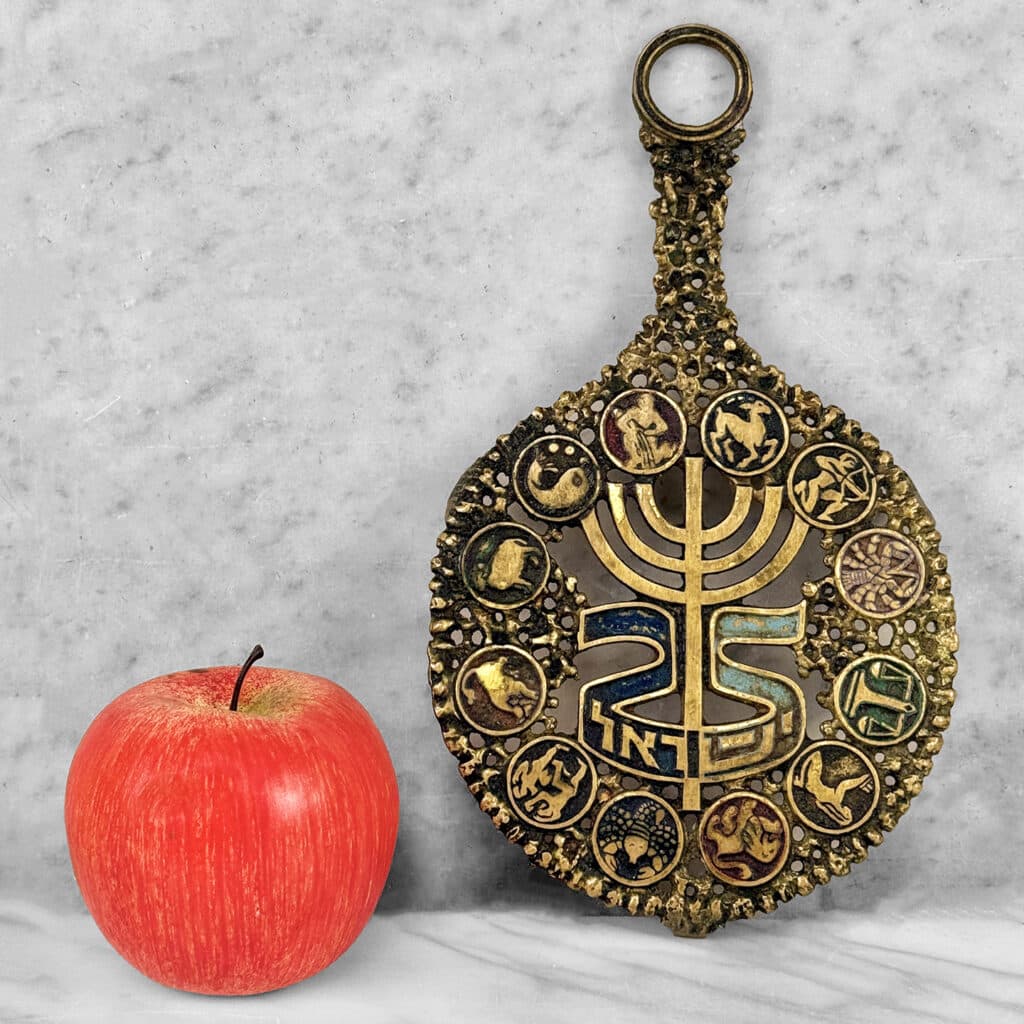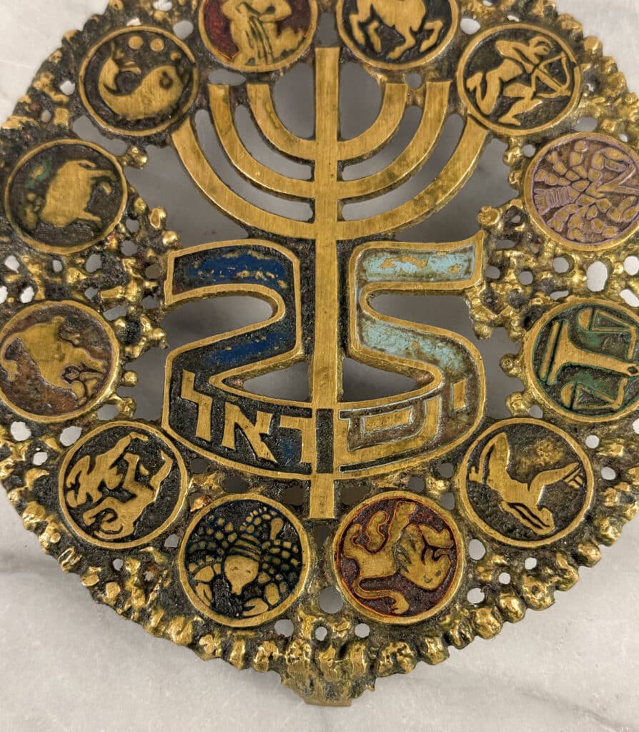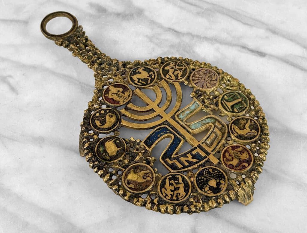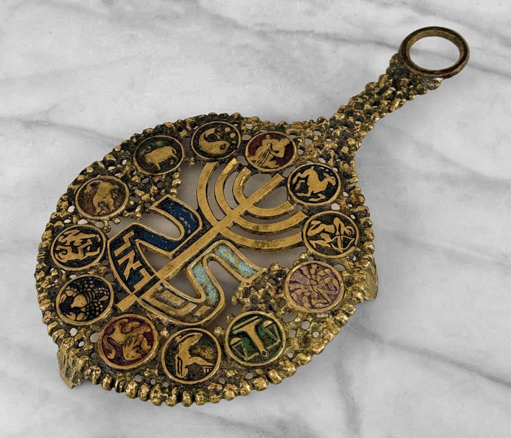 Vintage Brutalist Judaica Israel Zodiac Brass Serving Trivet
