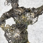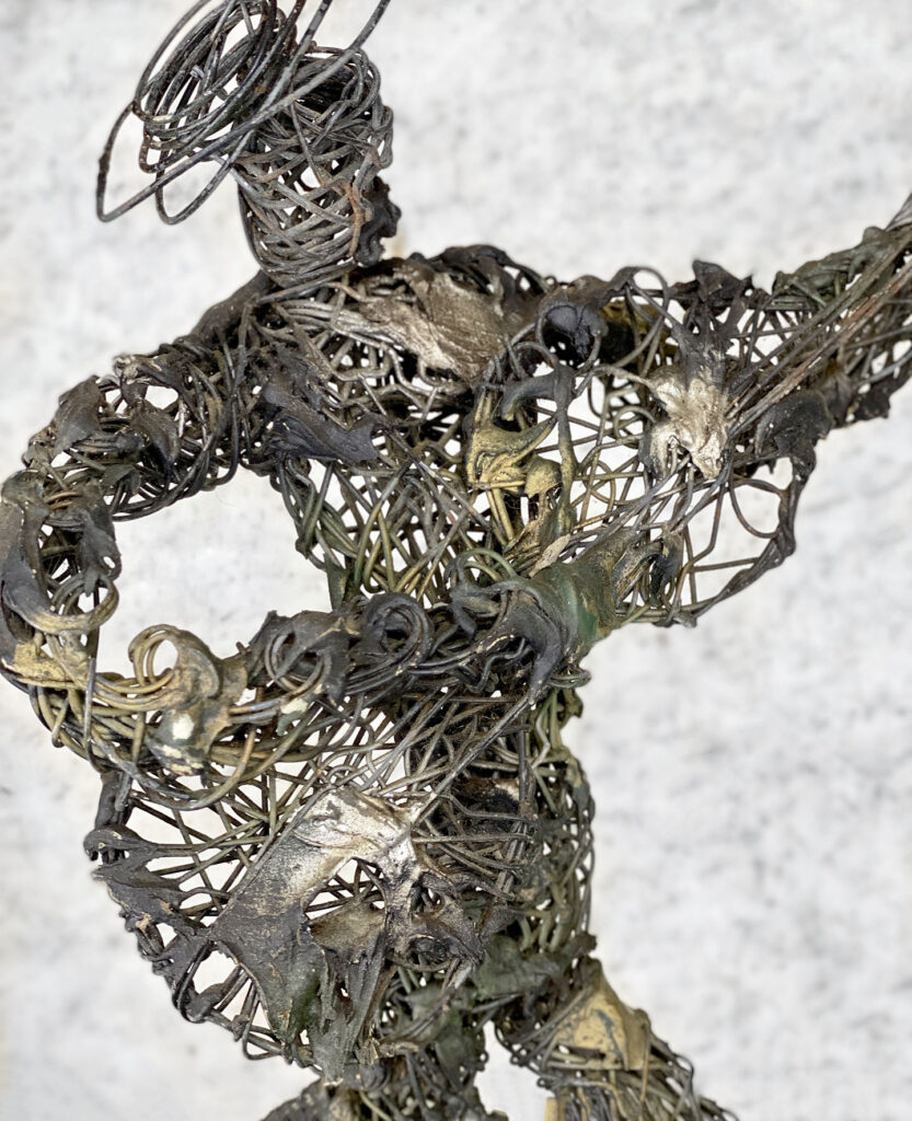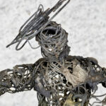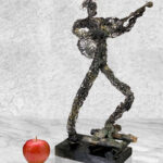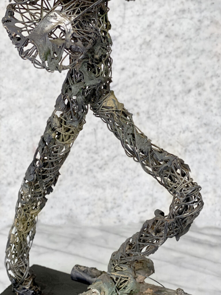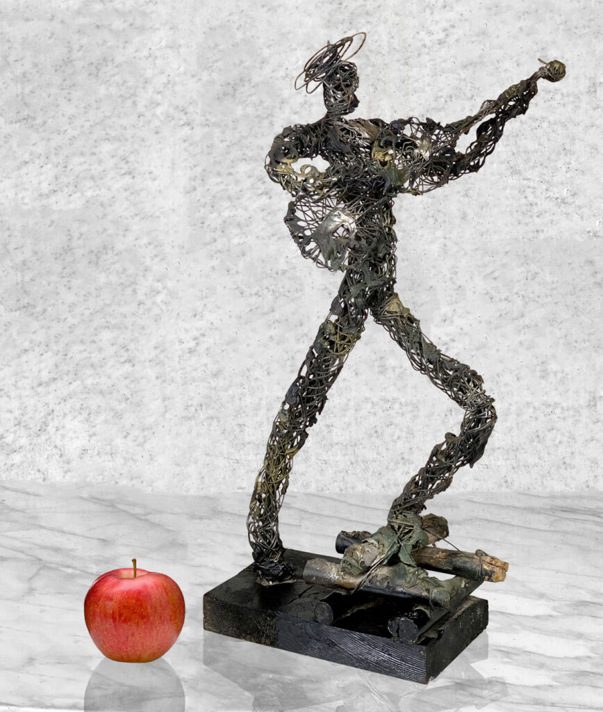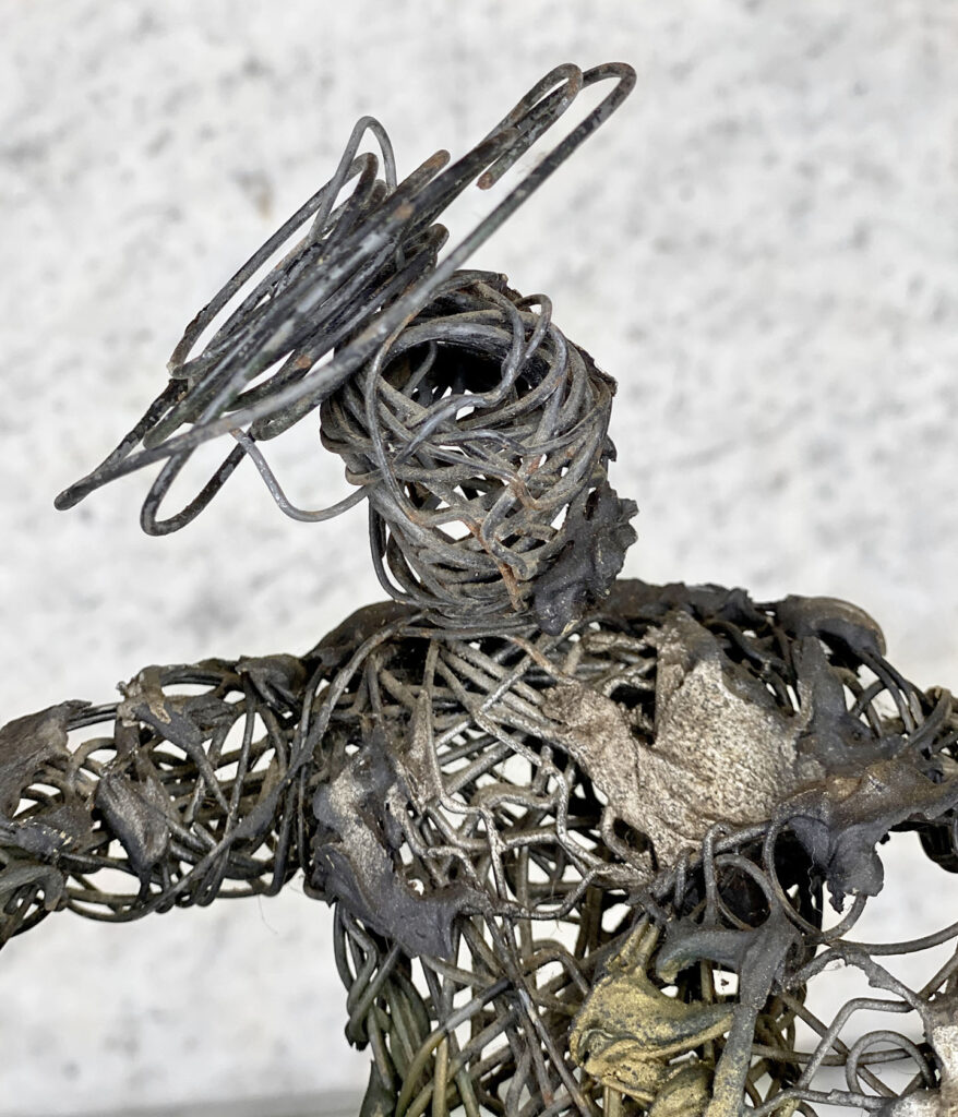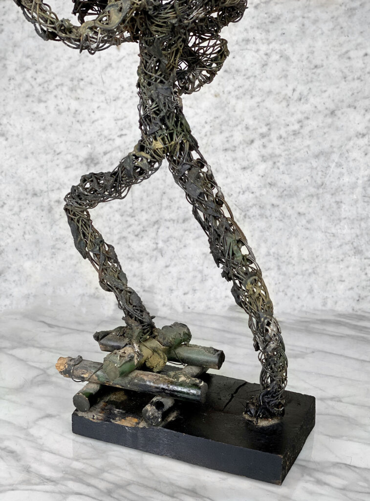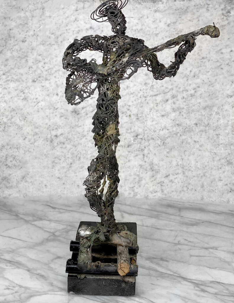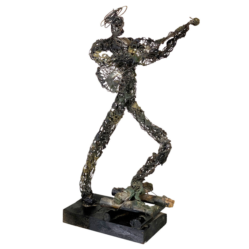 Vintage Brutalist Metal Wire Figural Man with Guitar Art Sculpture, c. Mid 20th Century