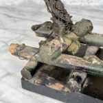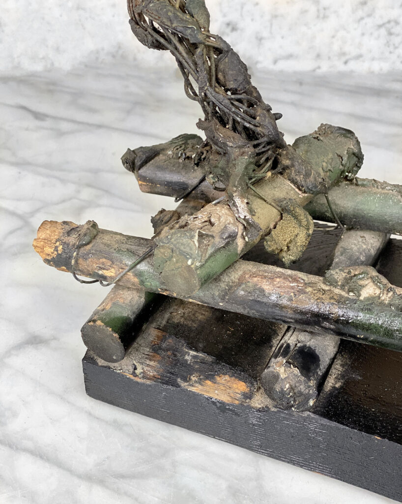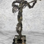 This Brutalist Metal Sculpture is in overall good condition. Despite it’s unusual proportions, the Sculpture stands upright as it should. Mild wear from age can be seen.