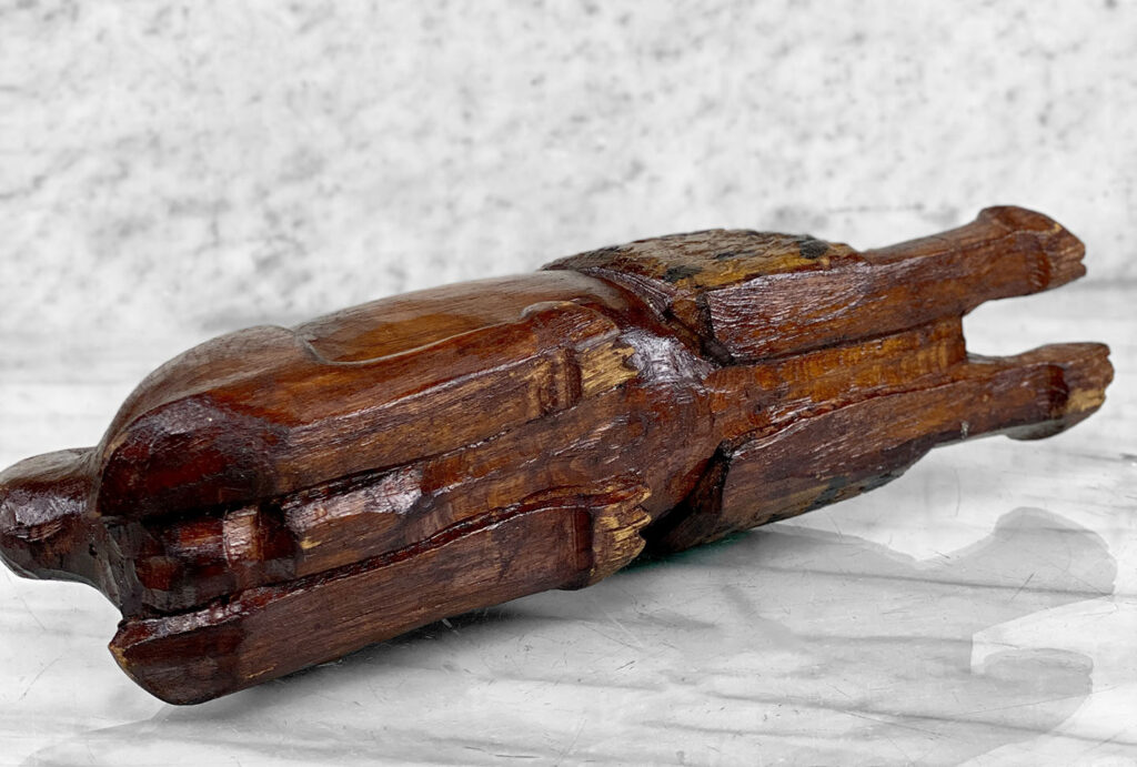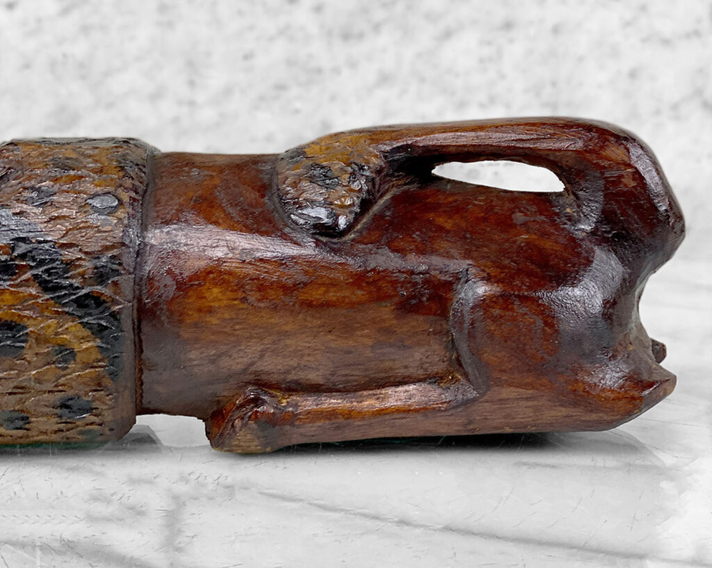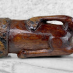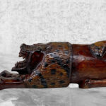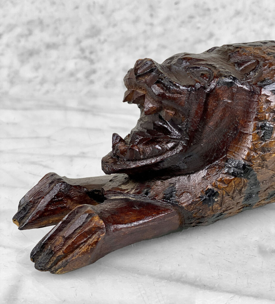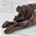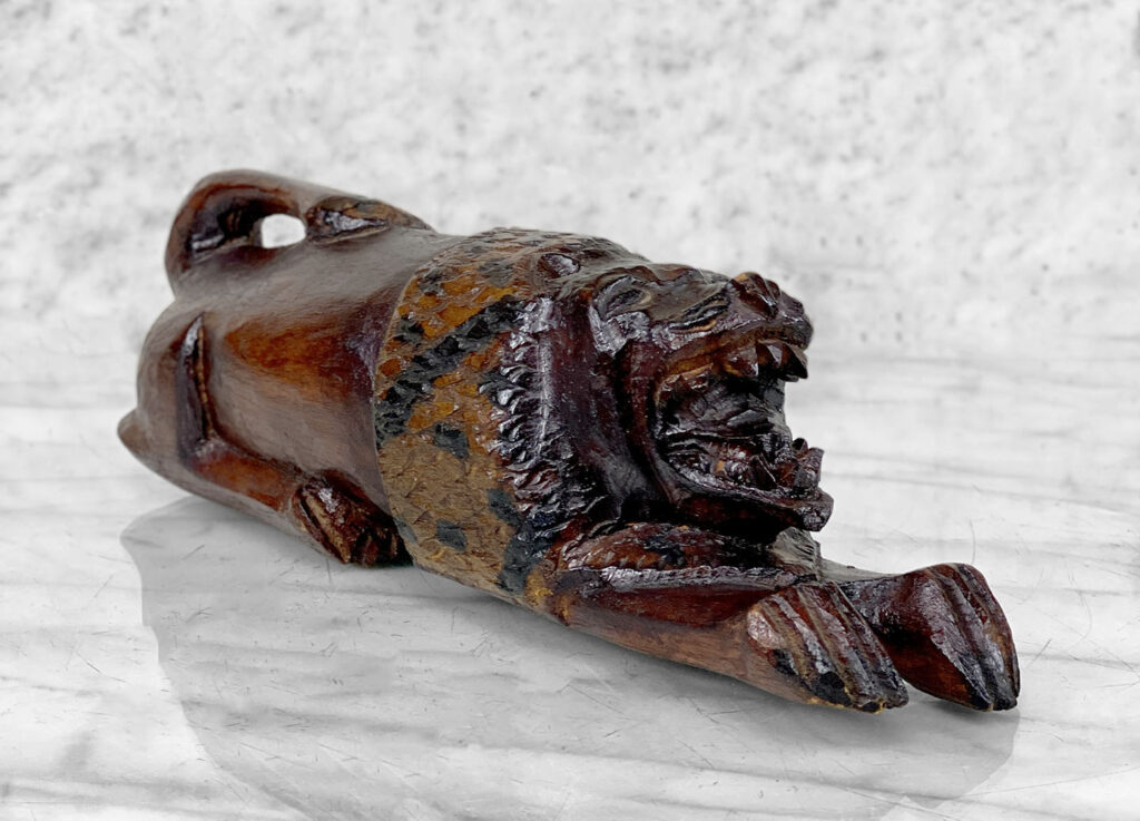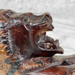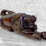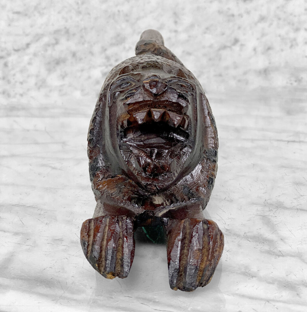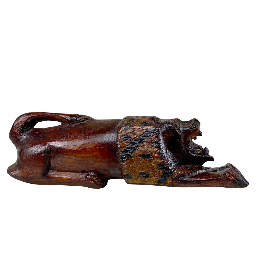 This Hand Carved Lion Sculpture is in overall good condition. Wear is shown and is consistent with its age, although it’s in nice display condition. Scratches, minor chips and blemishes to the finish could be found. There aren’t any repairs shown.