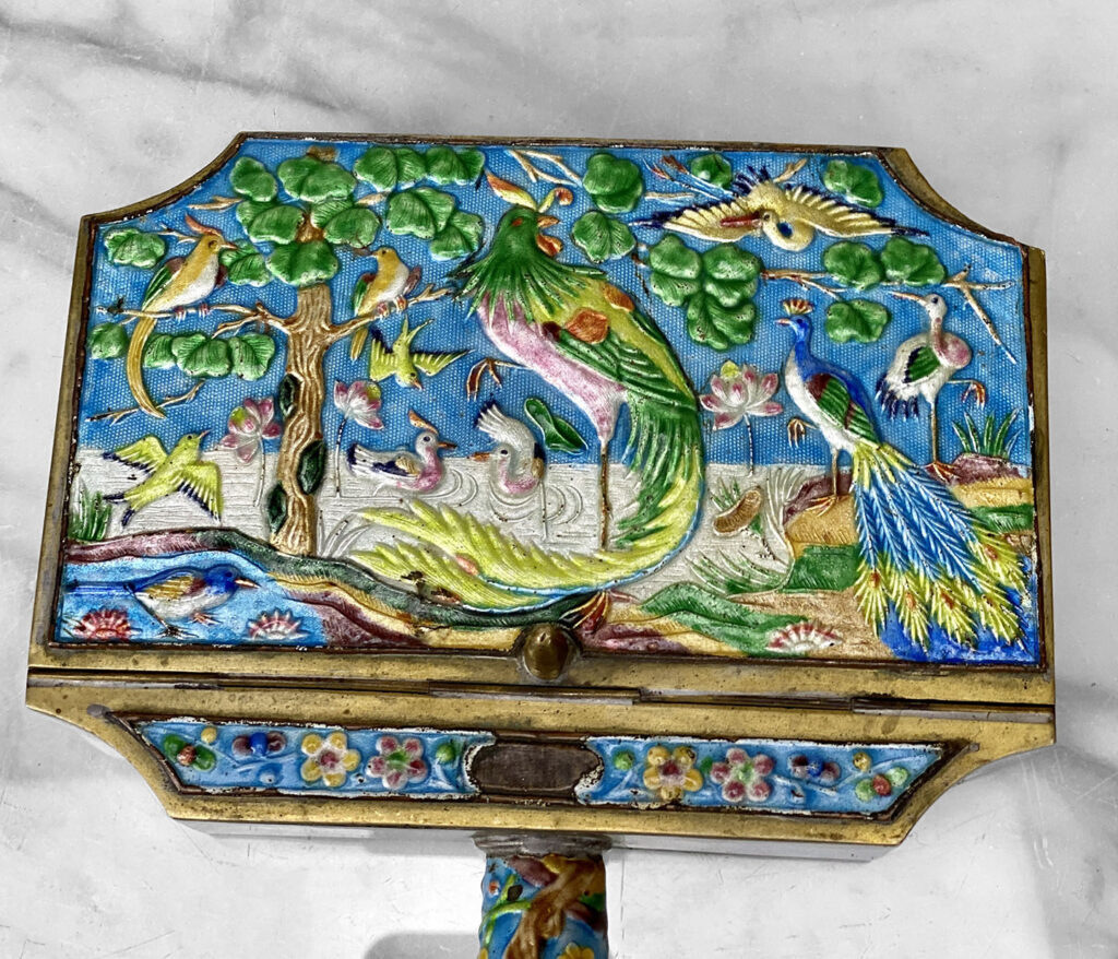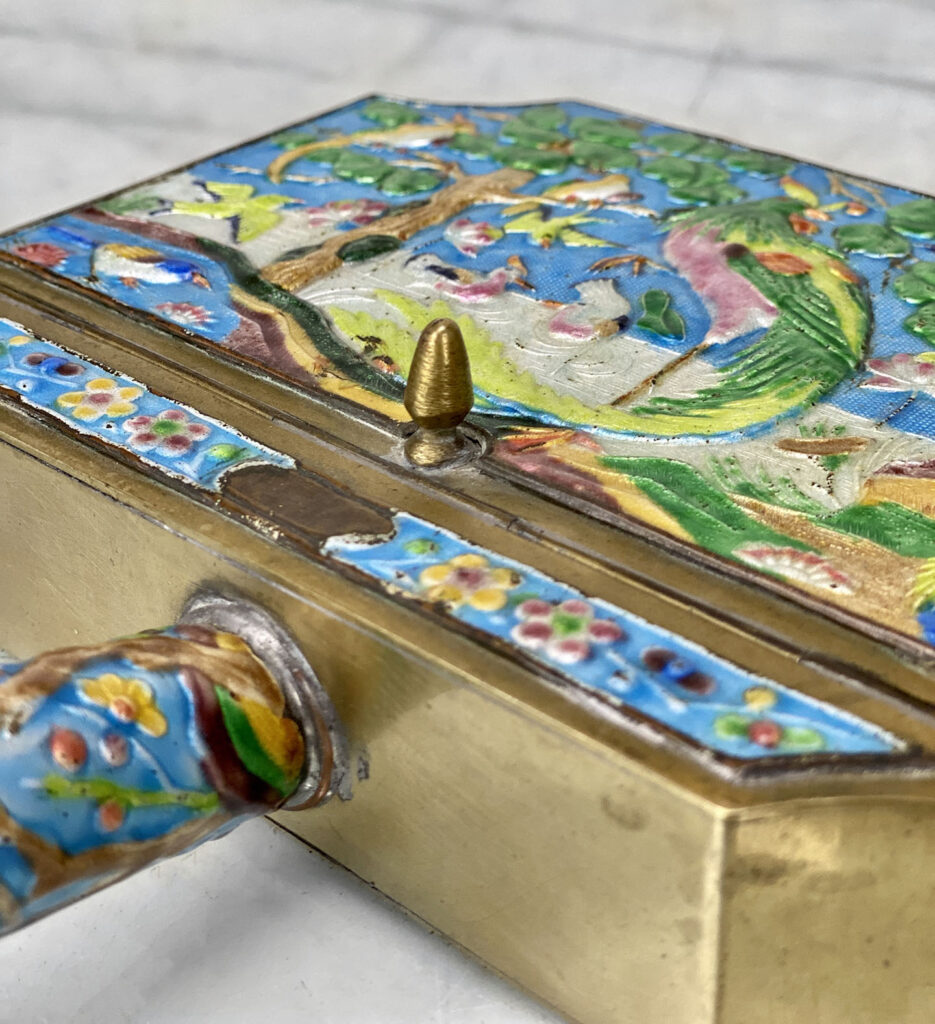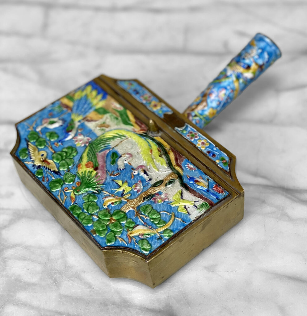 Vintage Chinese Brass Cloisonne Birds of Paradise Silent Butler, c. Mid 20th Century