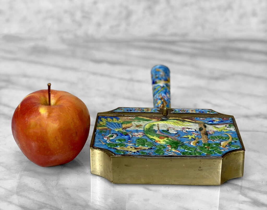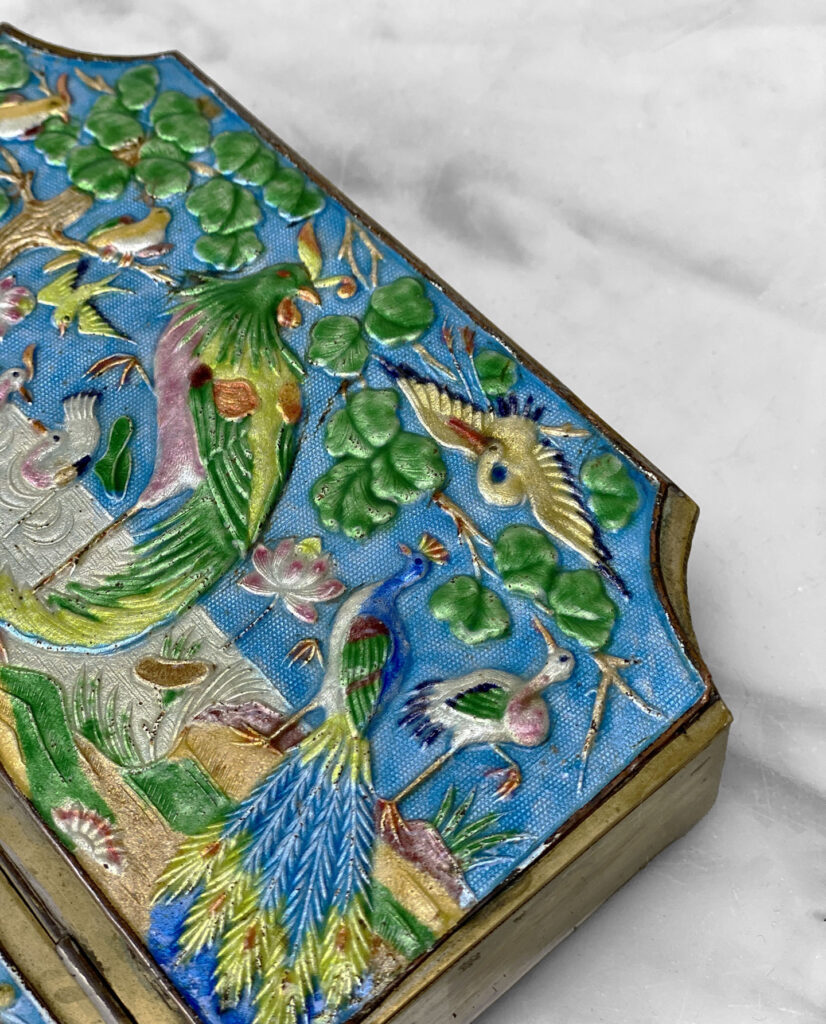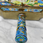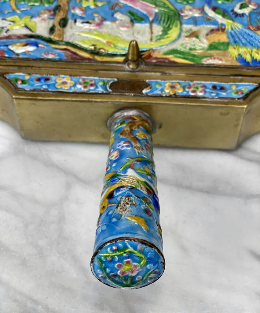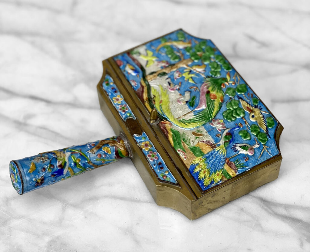 Vintage Chinese Brass Cloisonne Birds of Paradise Silent Butler, c. Mid 20th Century