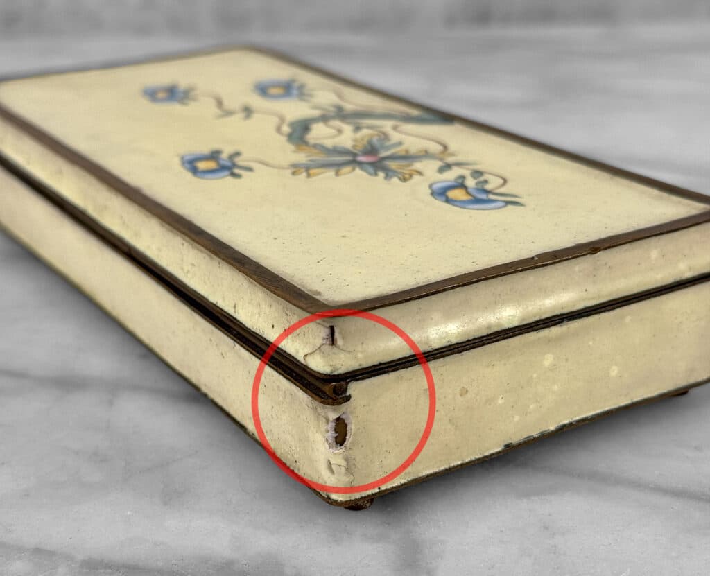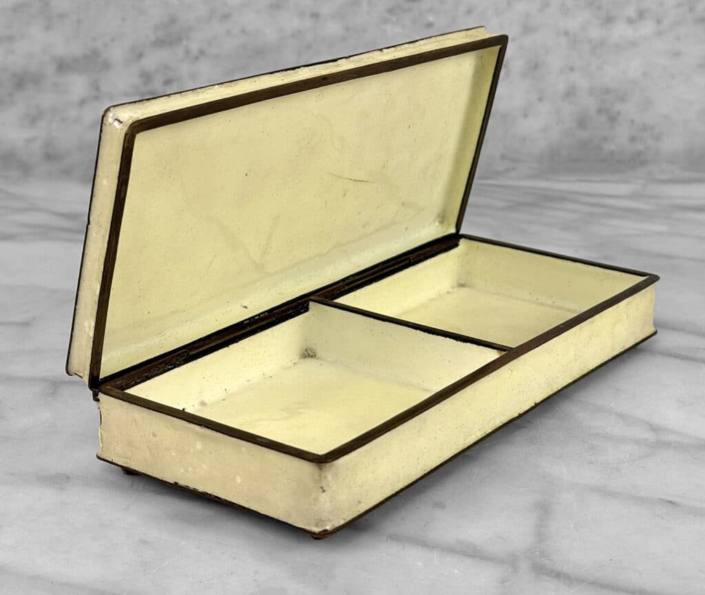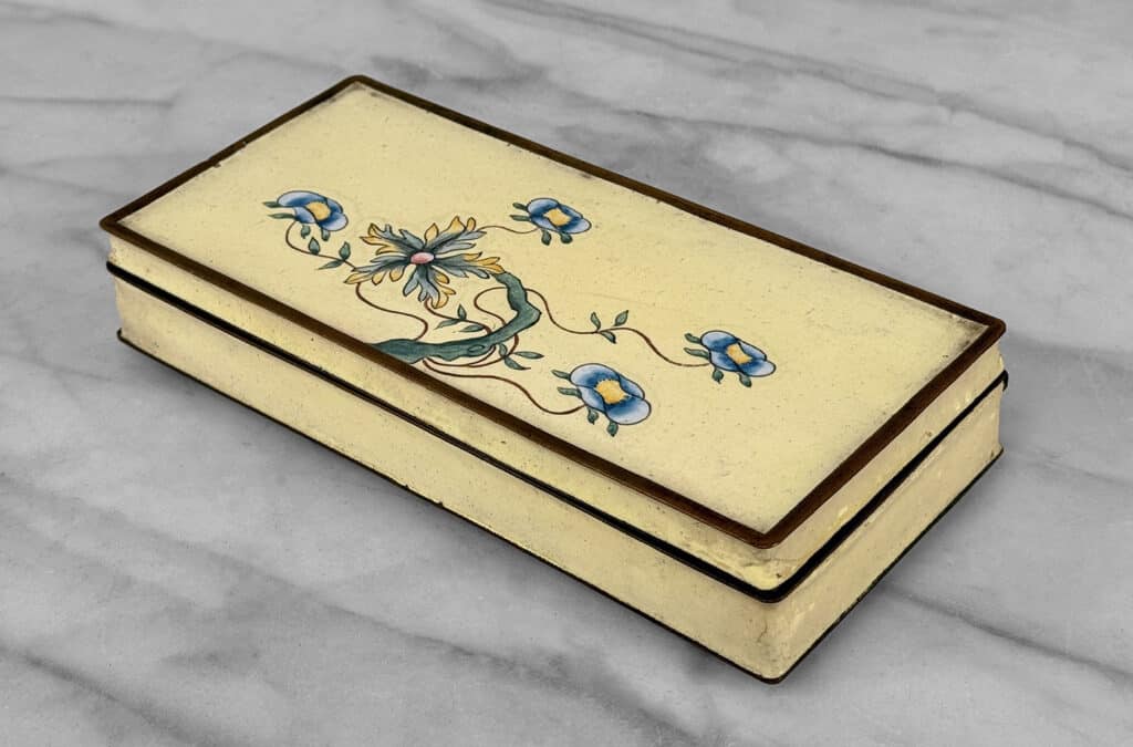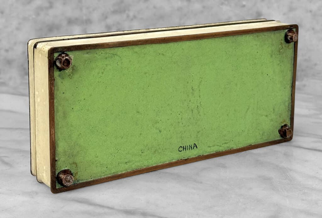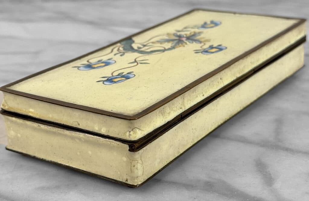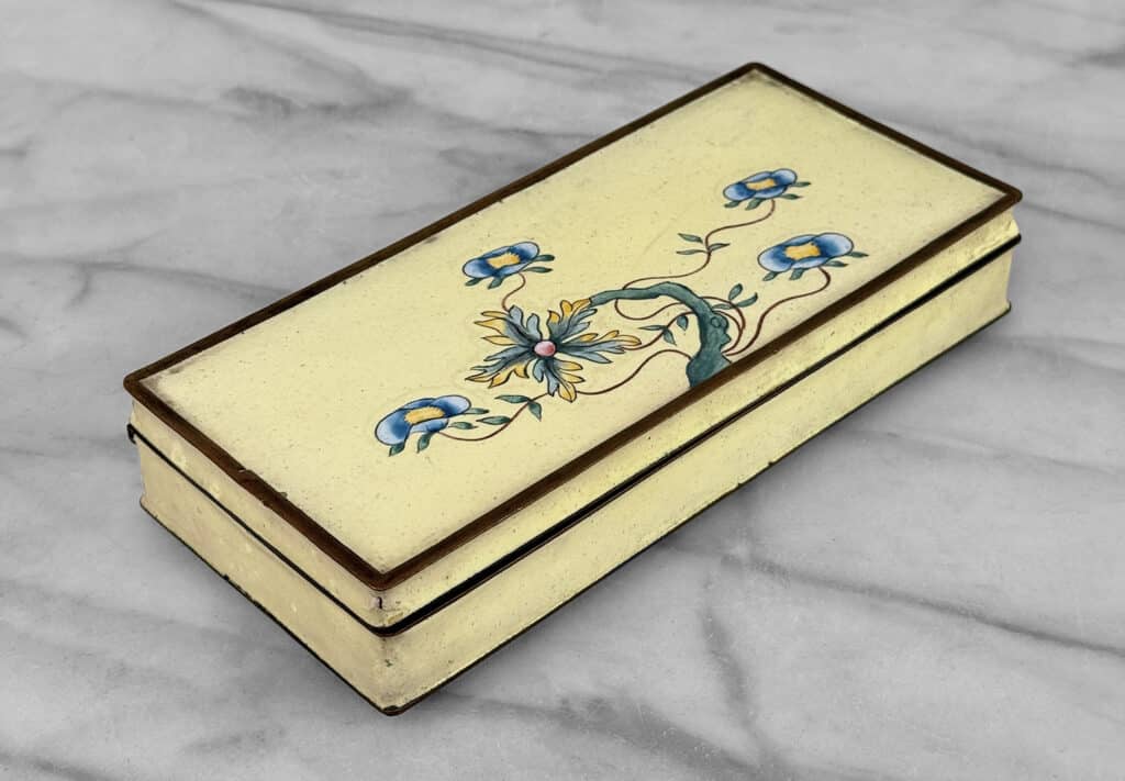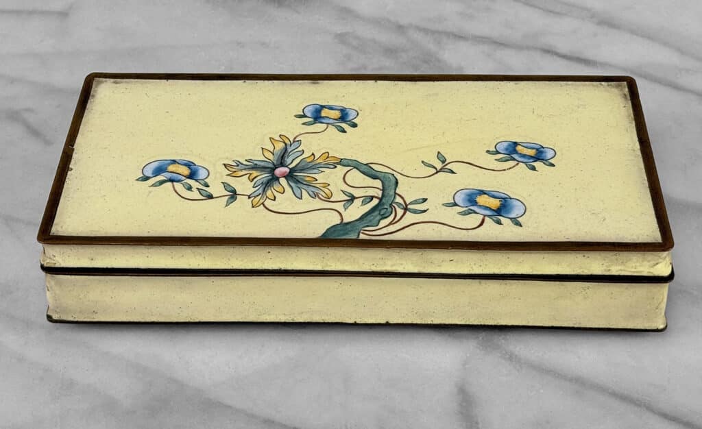 Vintage Chinese Brass & Enamel Floral Divided Cigarette Dresser Storage Box