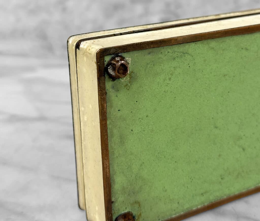 A great display piece, overall clean and very functional. Wear to the enamel finish can be seen to the corners, as well as discoloration.