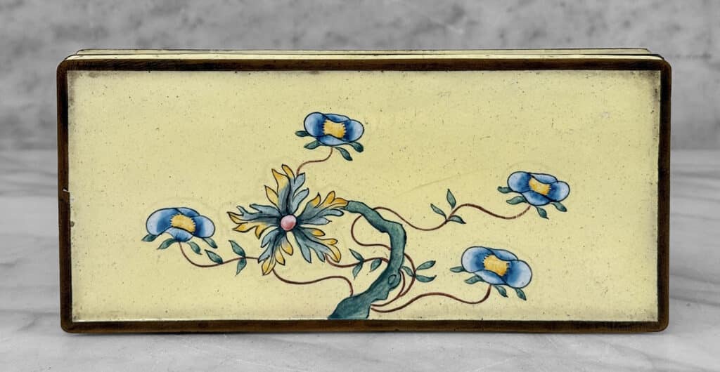 A Chinese Brass and Enamel Floral Divided Dresser Box, c. Mid 20th Century