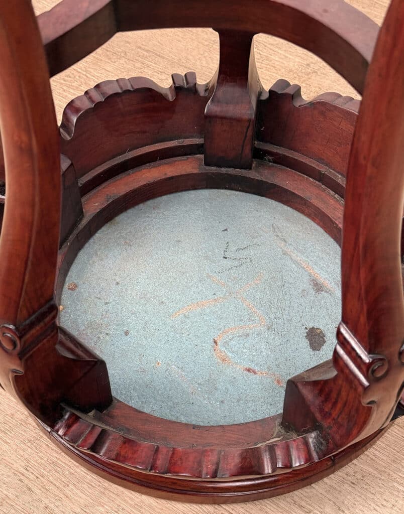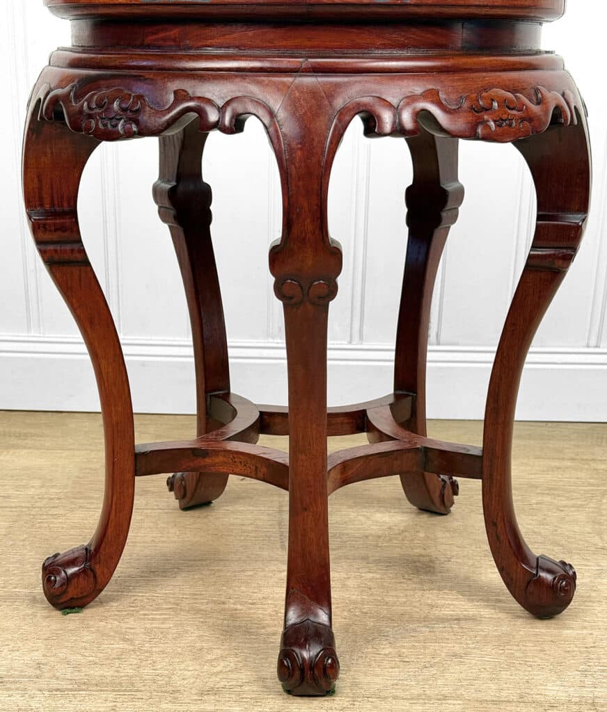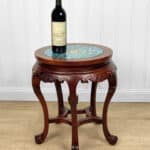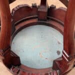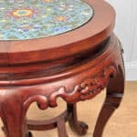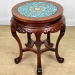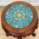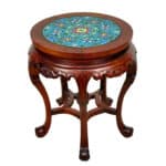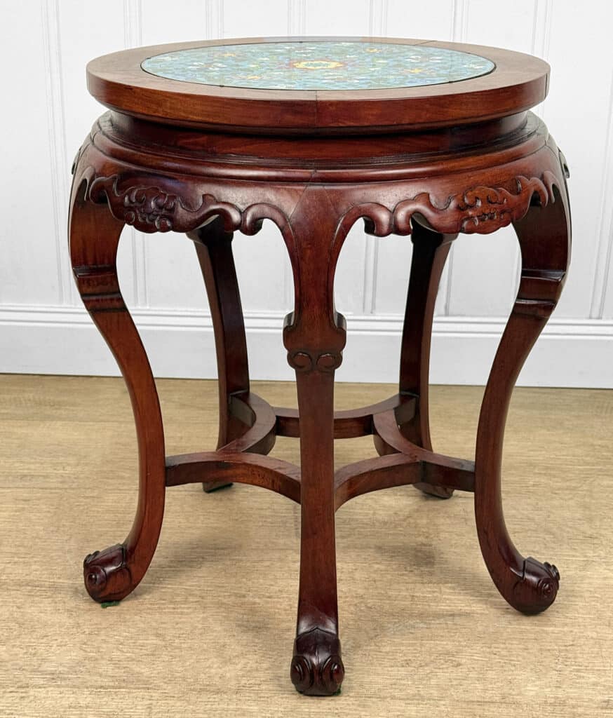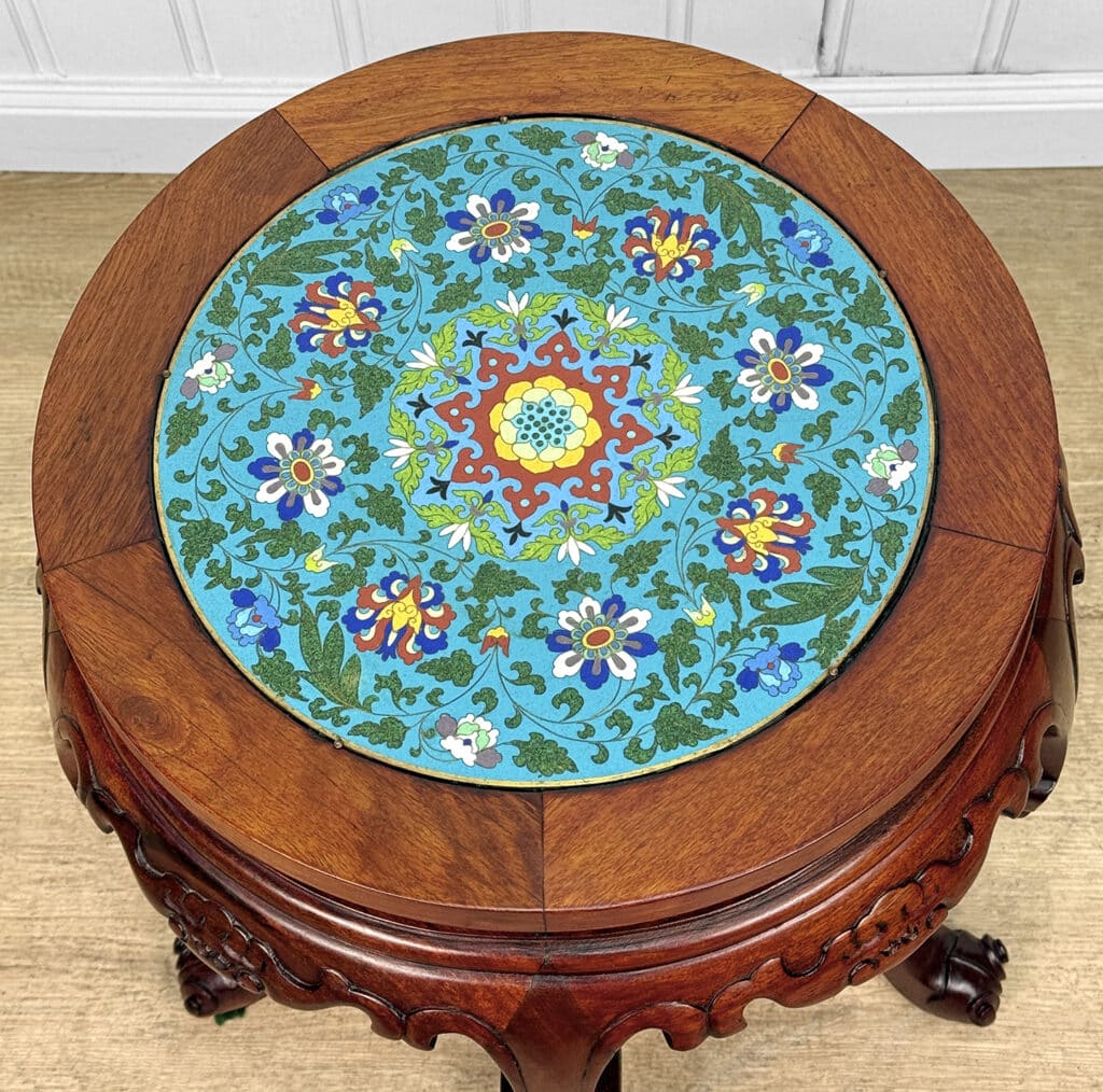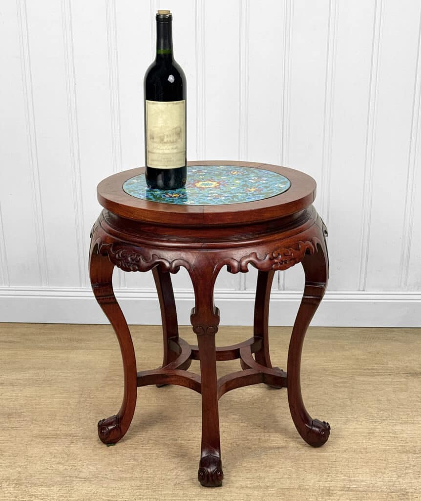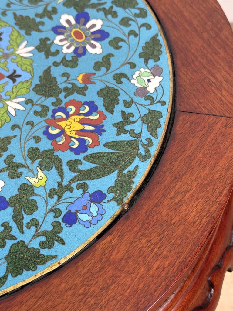 Overall good condition, solid, sturdy and supports a tremendous amount of weight. The cloisonne inset is not removable. Mild surface scratches can be seen from age.