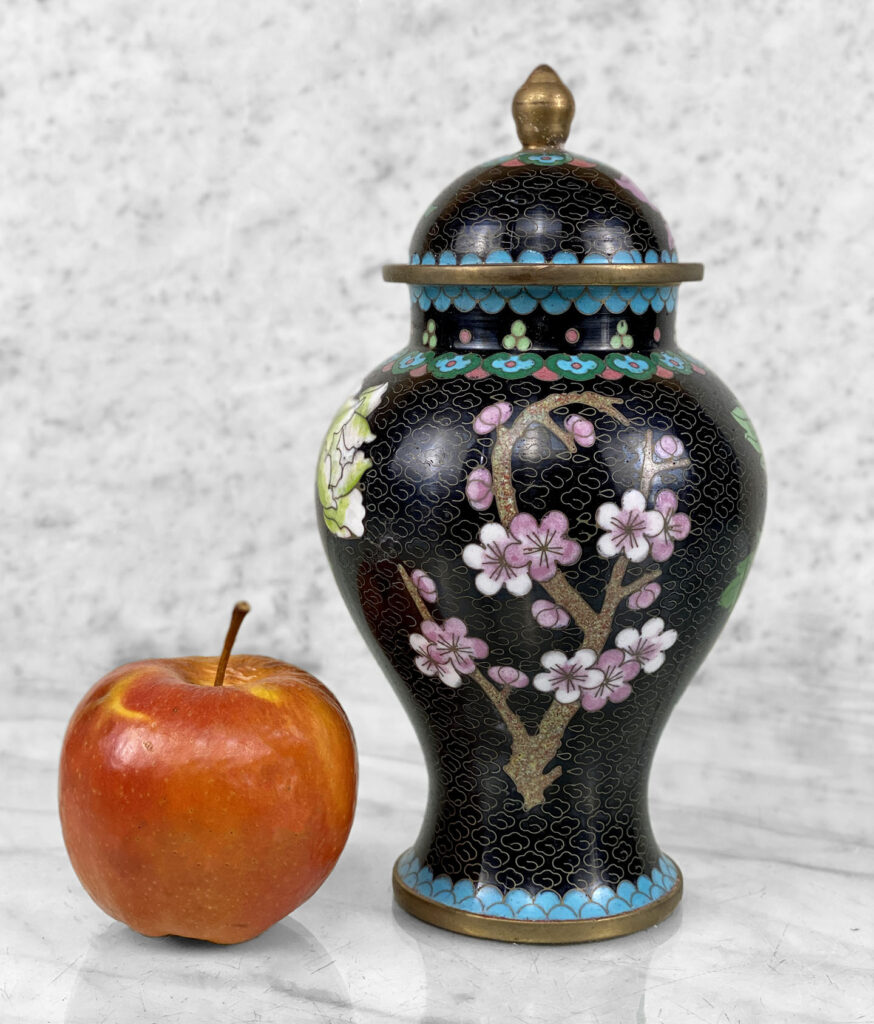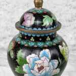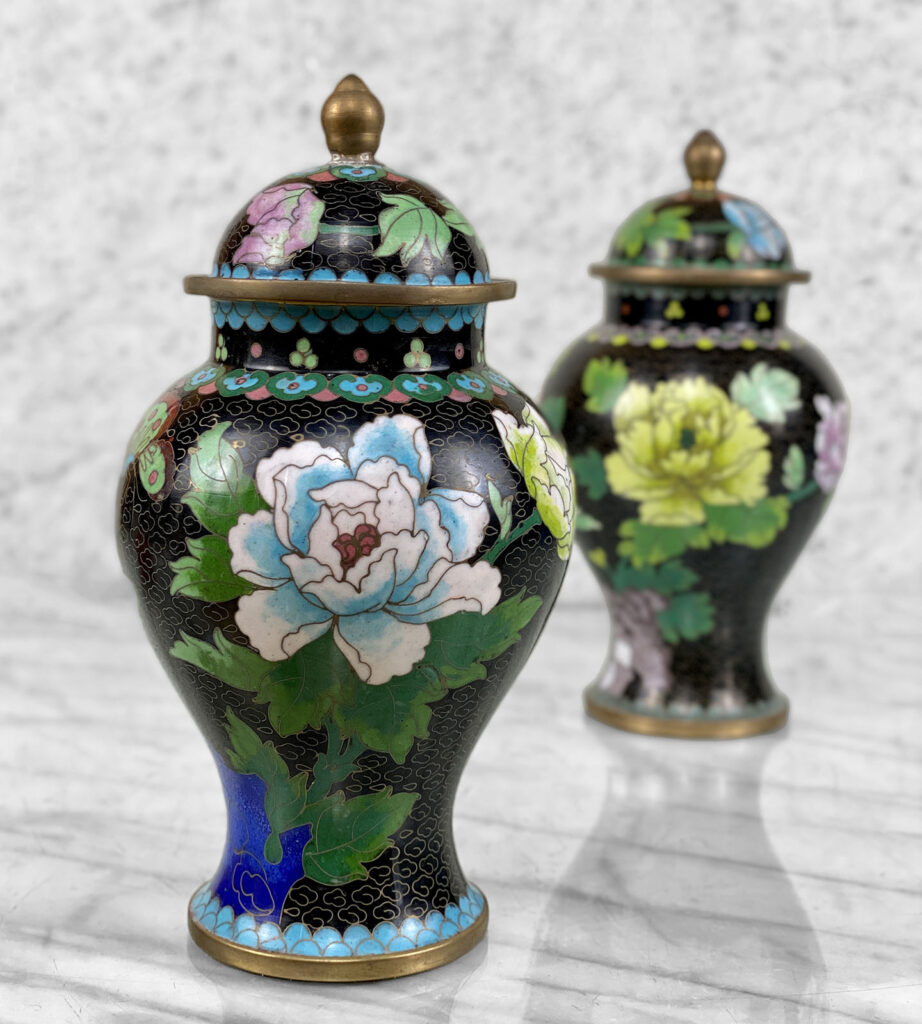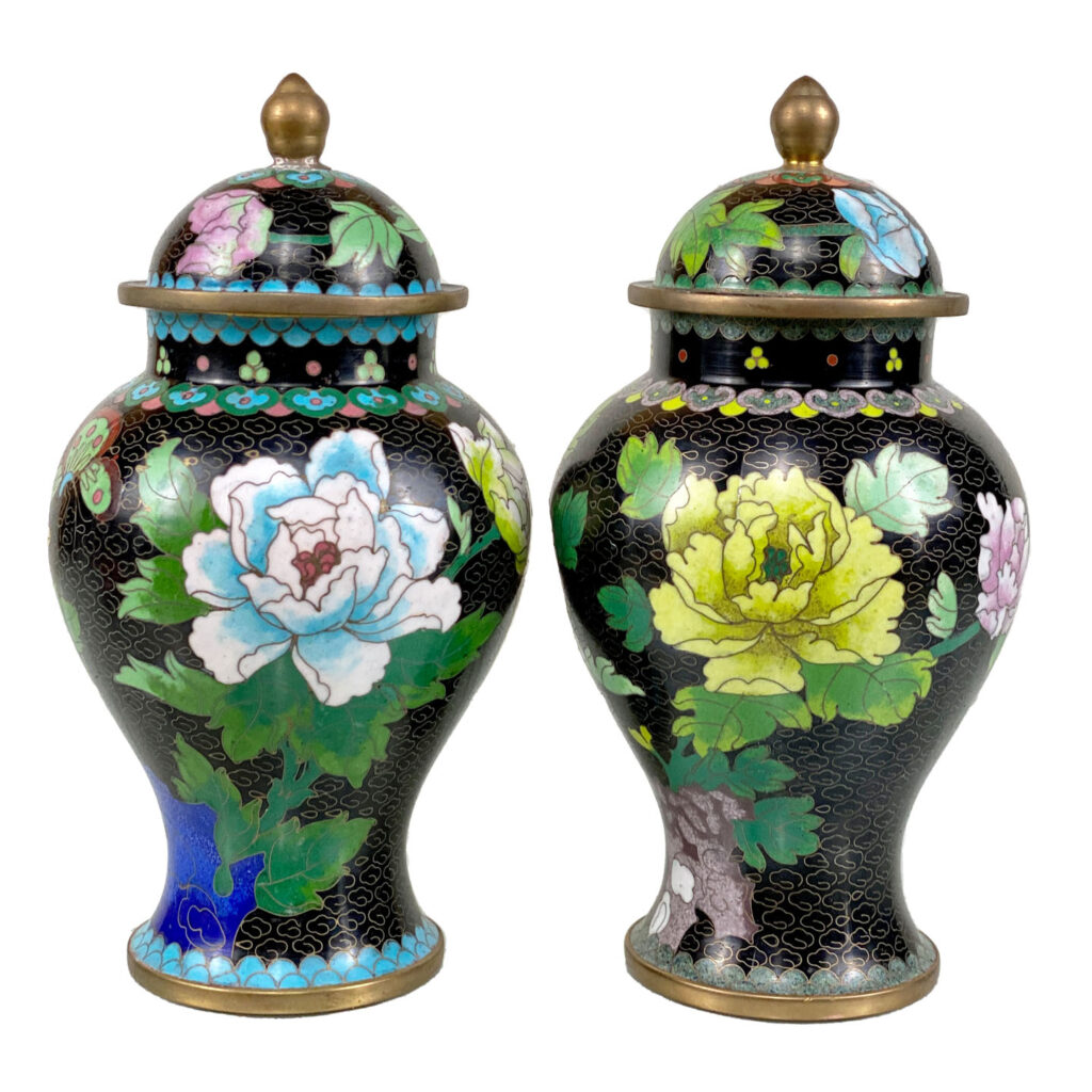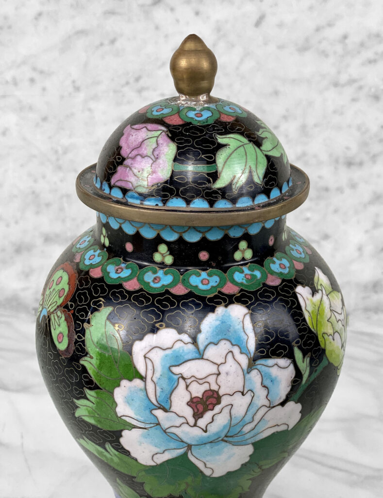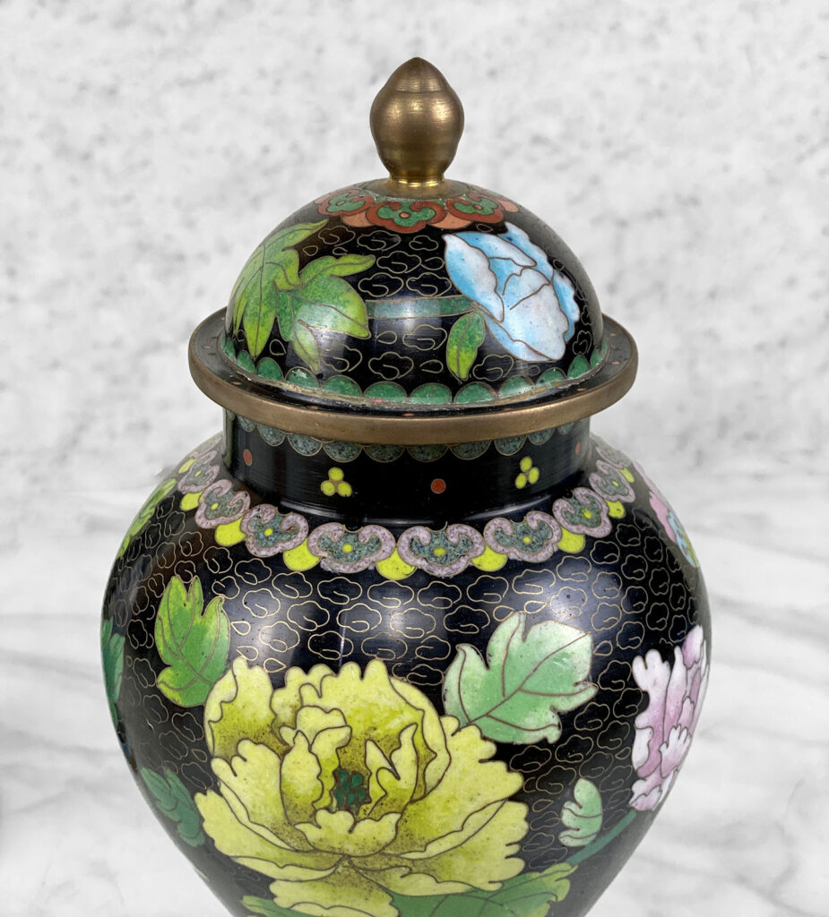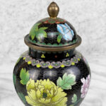 - Black Nimbus Motif with Sensational Floral Accents in Enamel, Contrasts Nicely