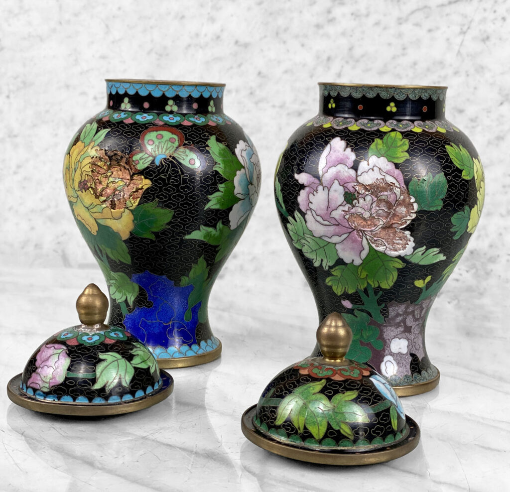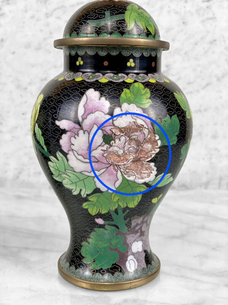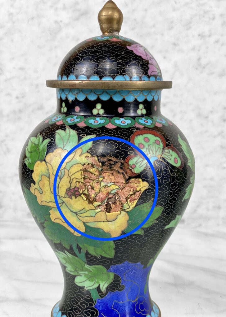 While each urn is in good presentable condition, each urn shows 1 puncture/dent mark. These areas are circled in our photo gallery to show each puncture to reference. Typically these areas would face the back so that it’s not visible.