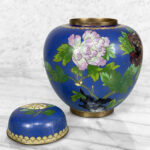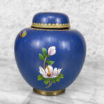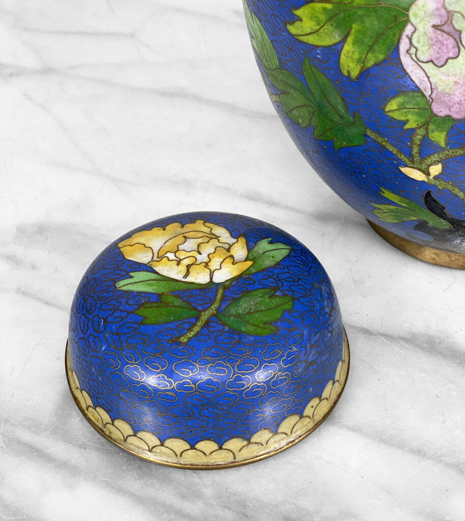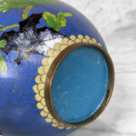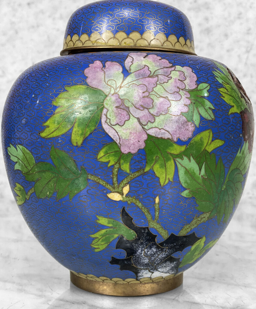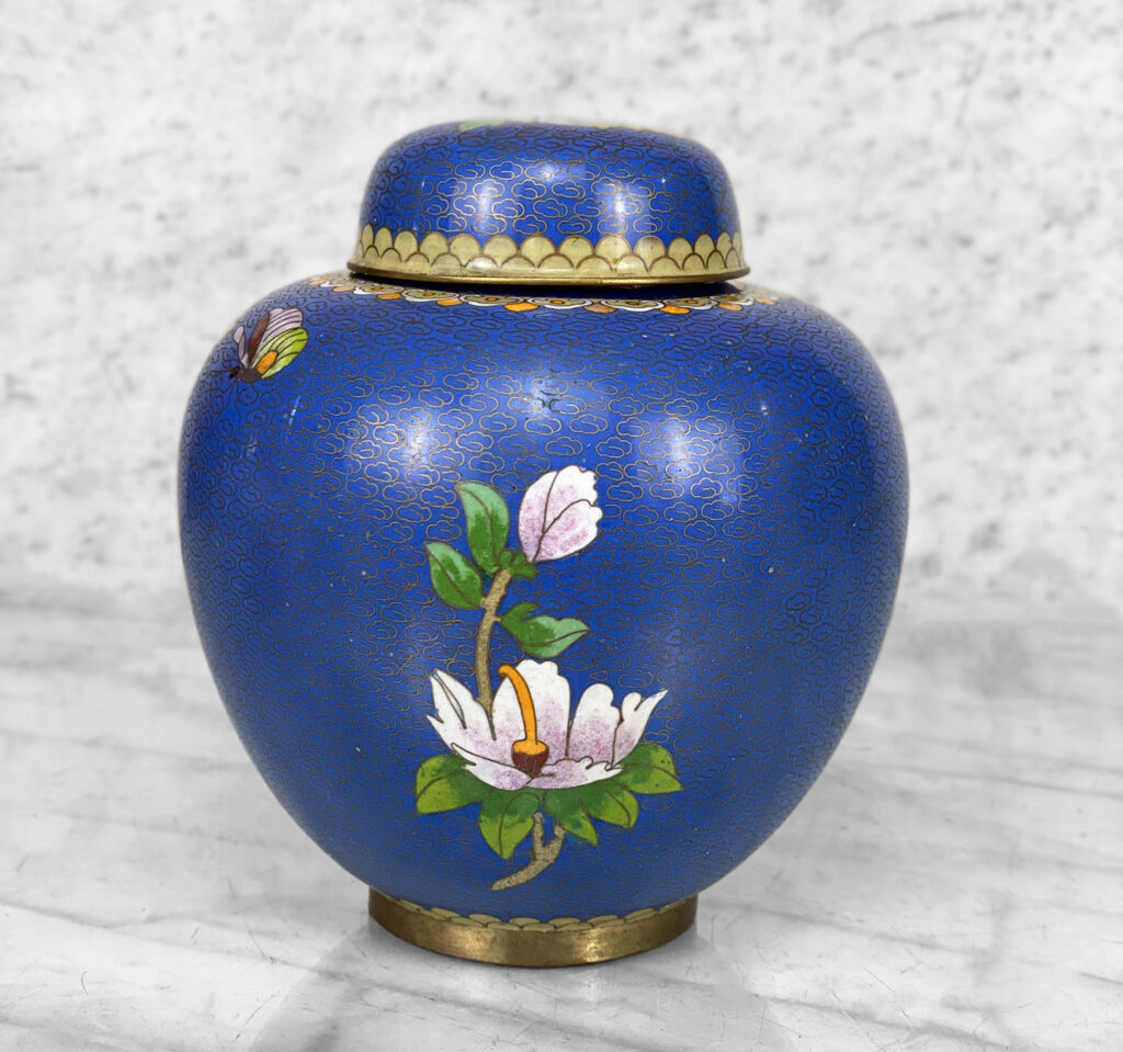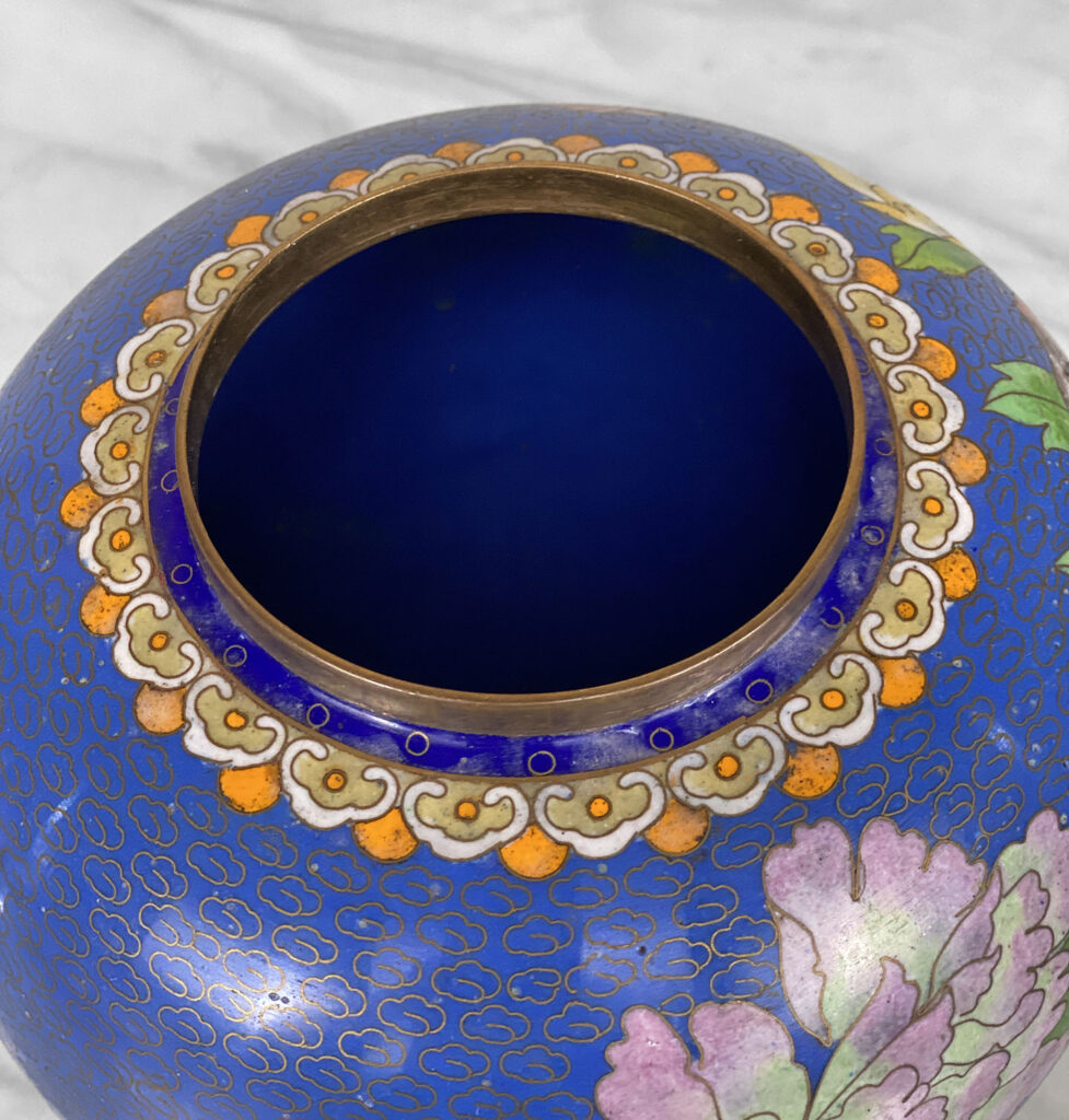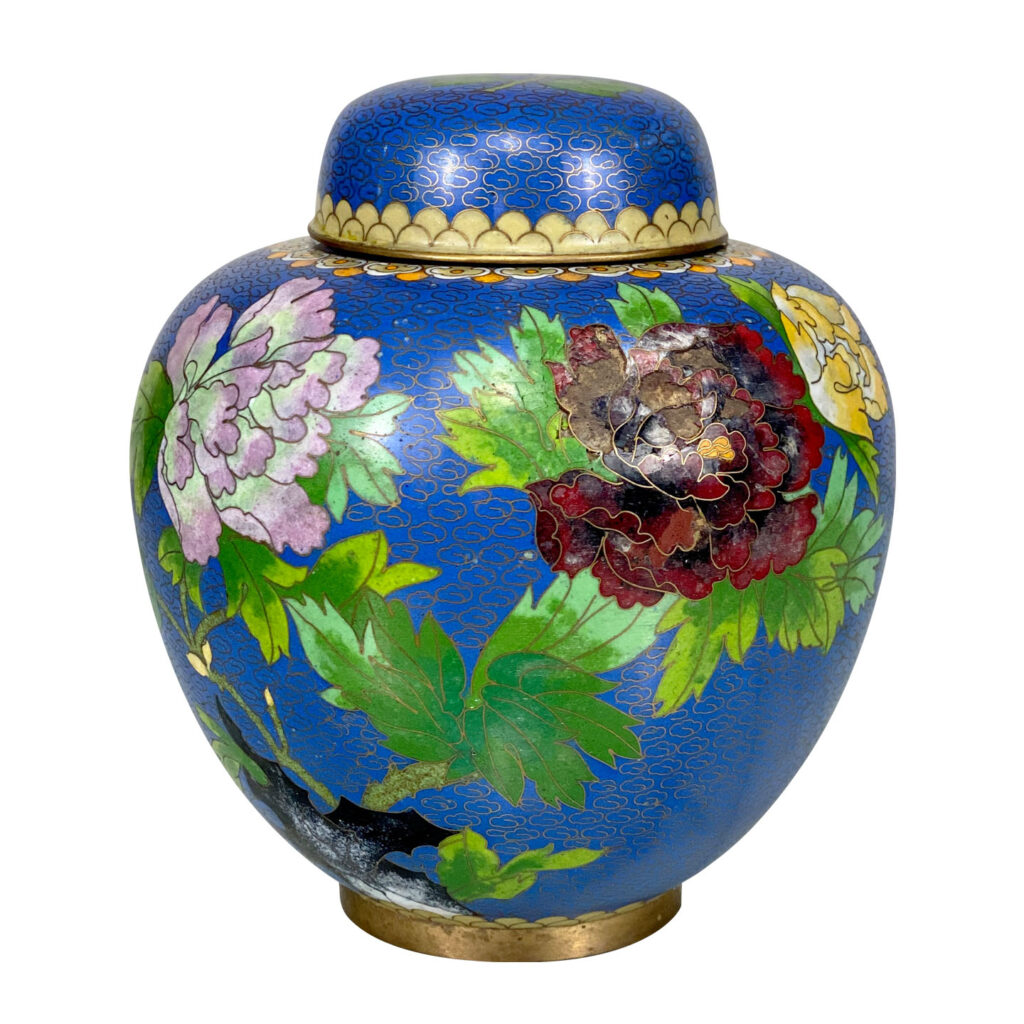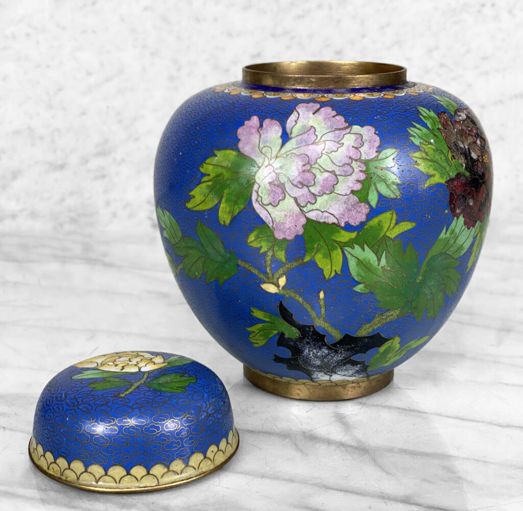 Vintage Chinese Cloisonne Brass & Enamel Blue Ginger Jar Urn, c. Mid 20th Century