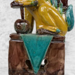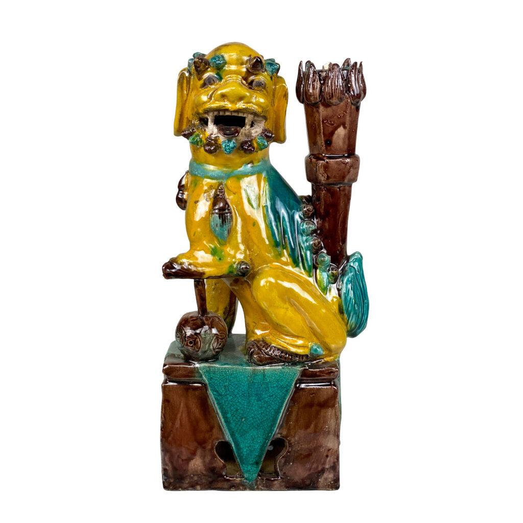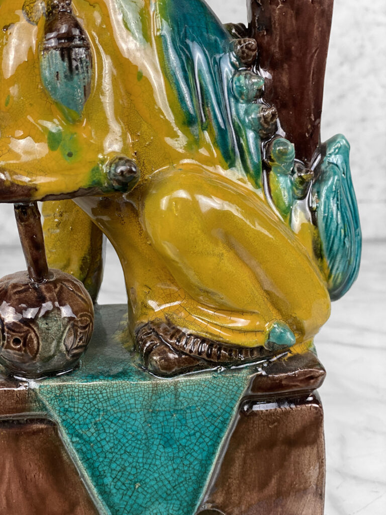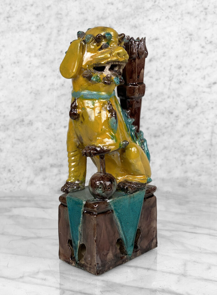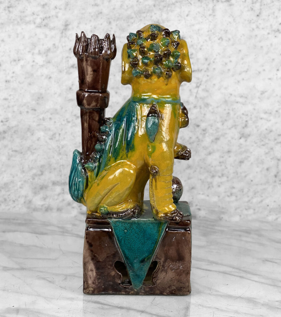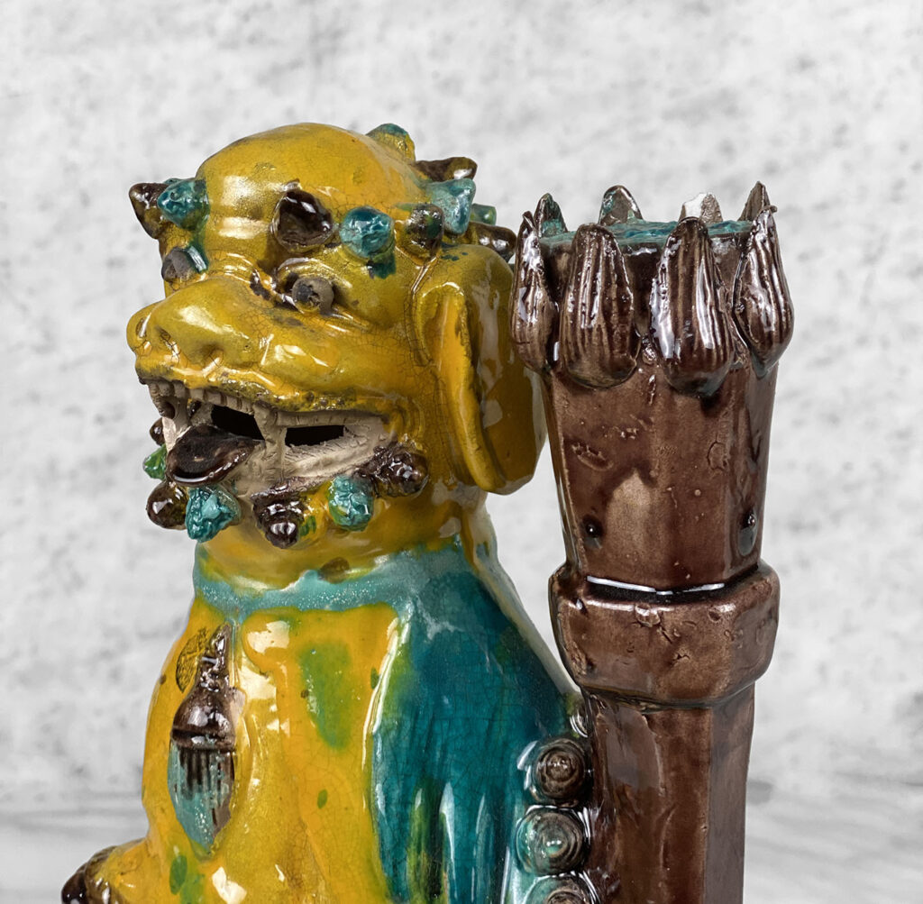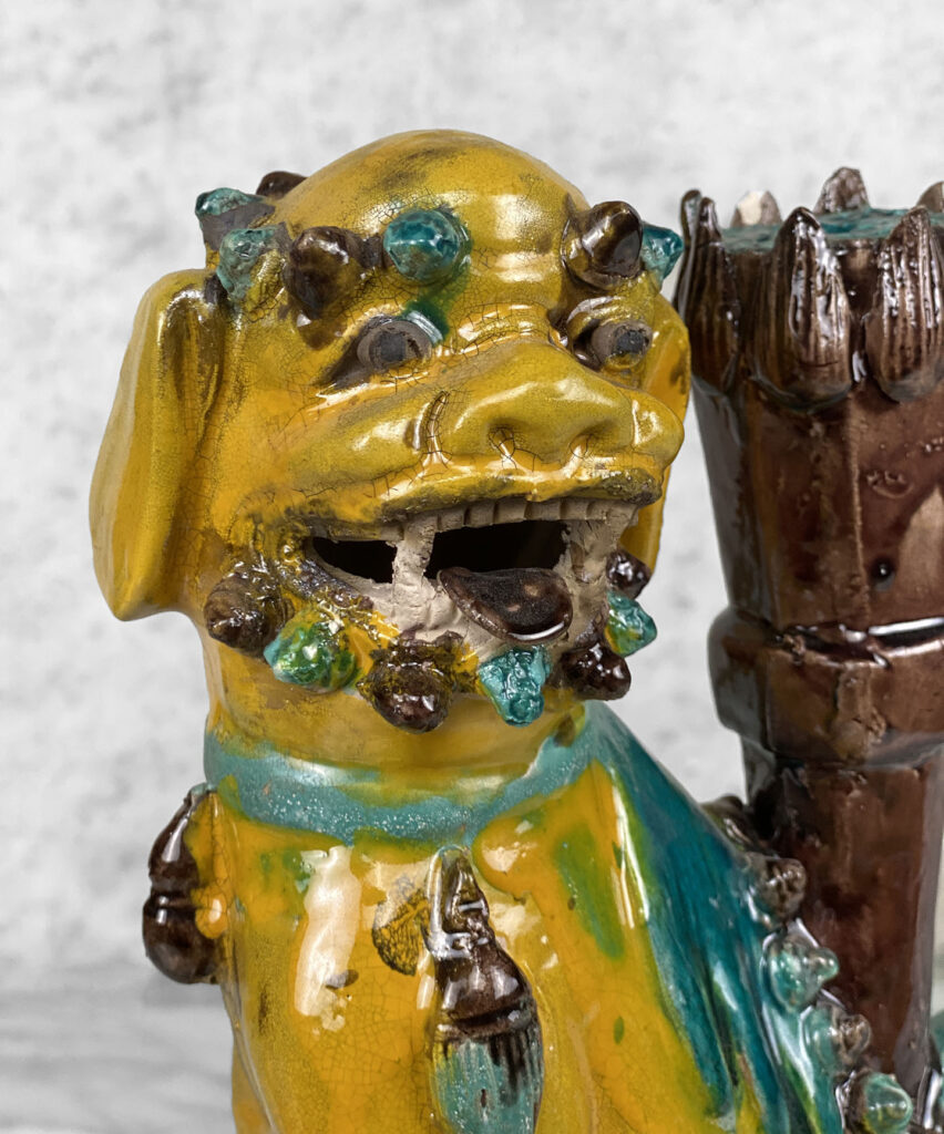 Vintage Chinese Majolica Porcelain Foo Dog Sculpture