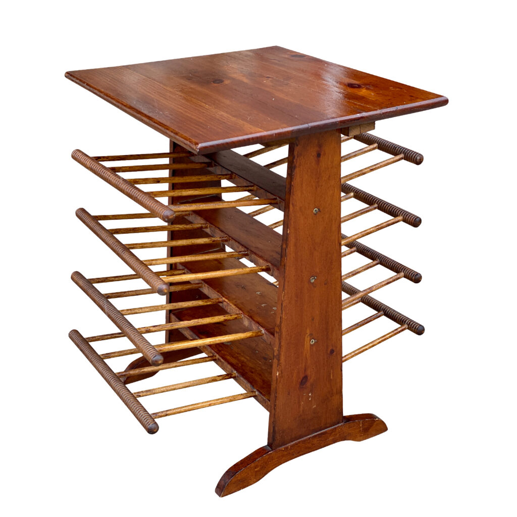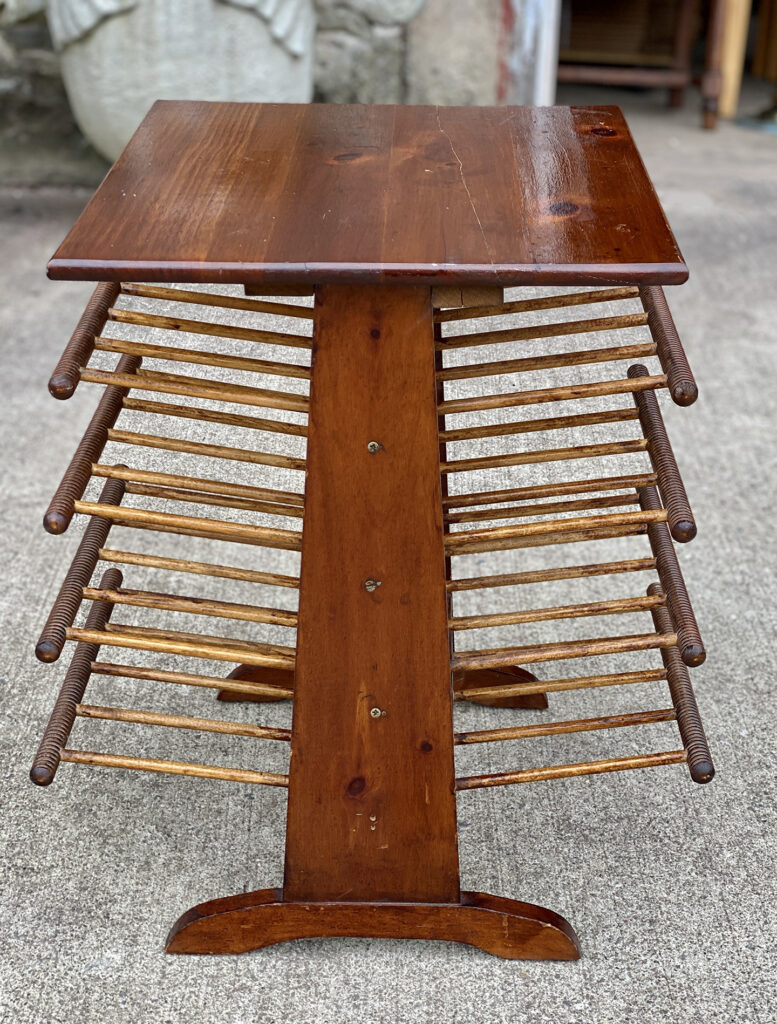 Vintage Farmhouse Turned Pine Spindle Magazine Record Holder Rack, c. Mid 20th Century