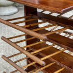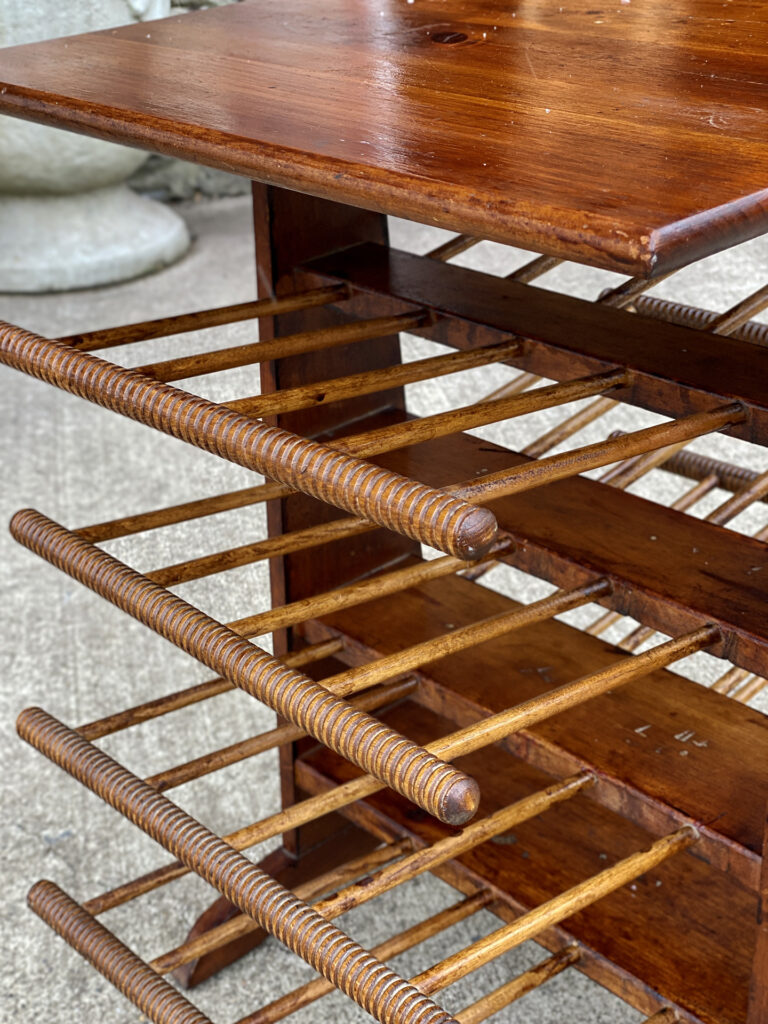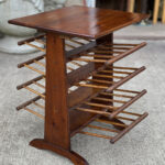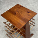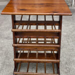 This Magazine (or Record) Stand was exceptionally well made, it’s both solid and sturdy. A crack along the top surface is shown, this area is circled in our photo gallery to reference. The piece was refinished and shows mild repairs from age.